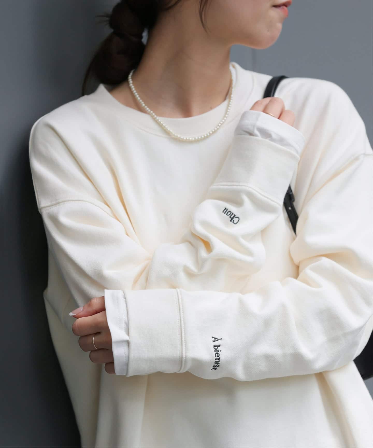袖口や裾から見えるインナーのバランスにこだわったレイヤードスウェット。