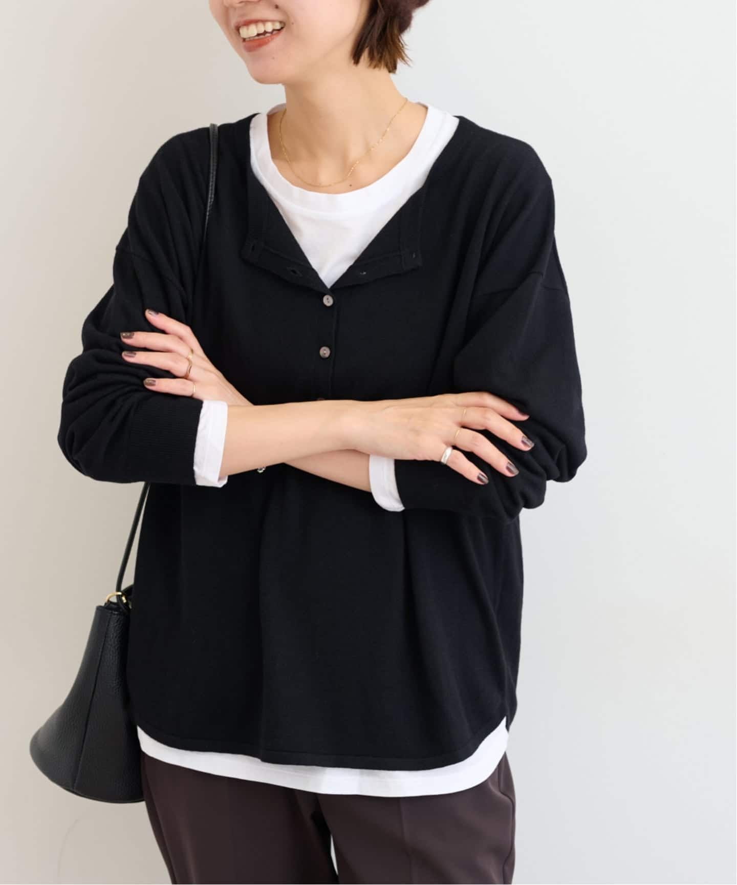 カラー違いでのレイヤードや他のトップスとレイヤードも可能です!