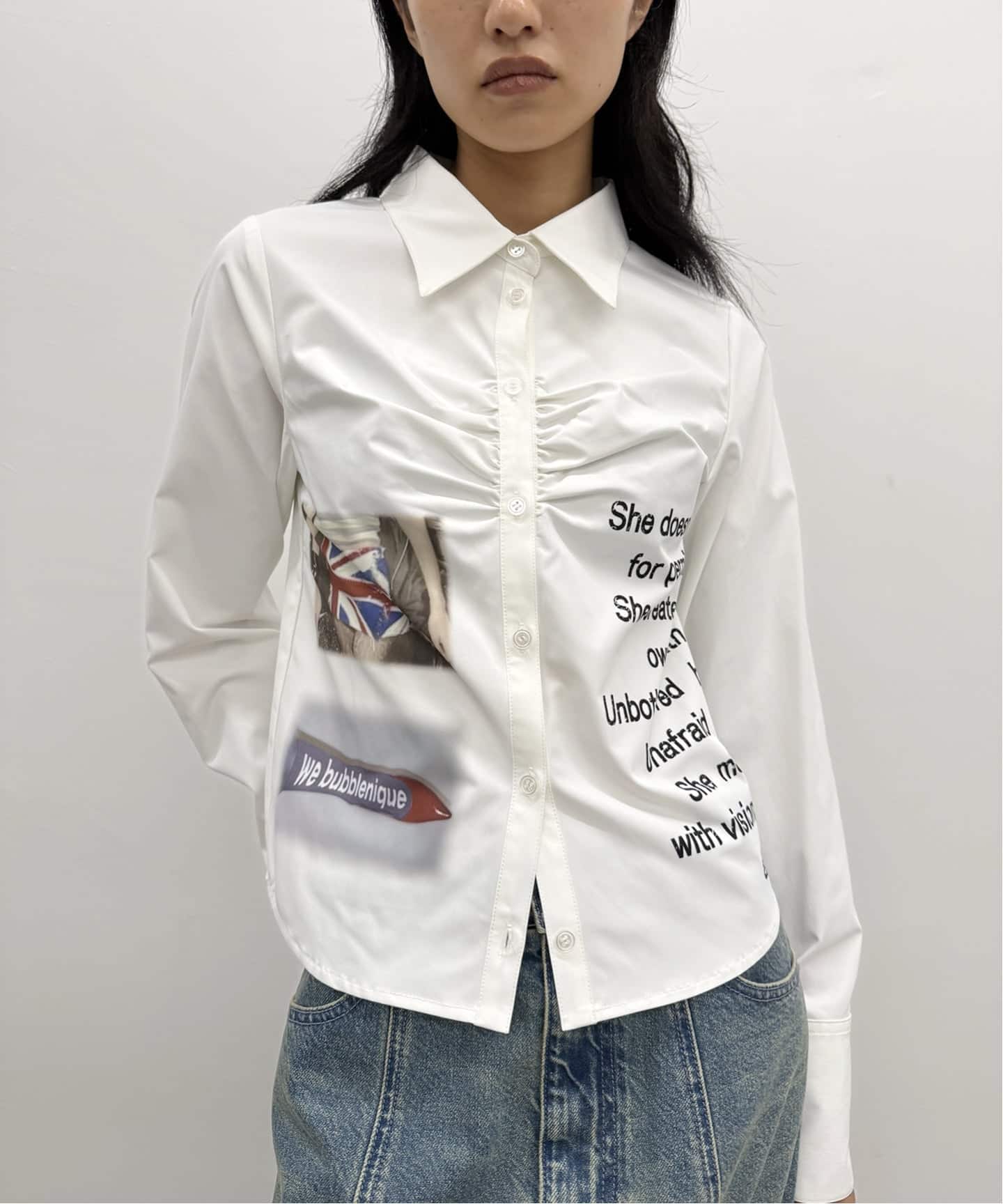 プリントギャザーシャツ