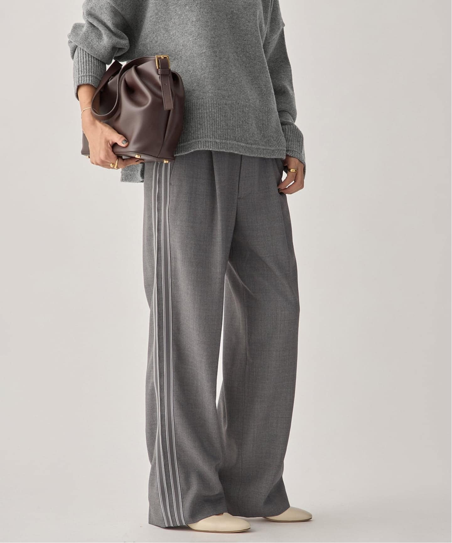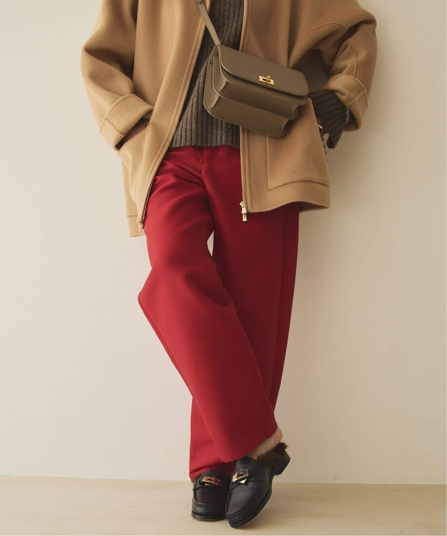 ベーシックなのに、どこか特別。ニットを合わせるだけで完成するスタイリング力も魅力。