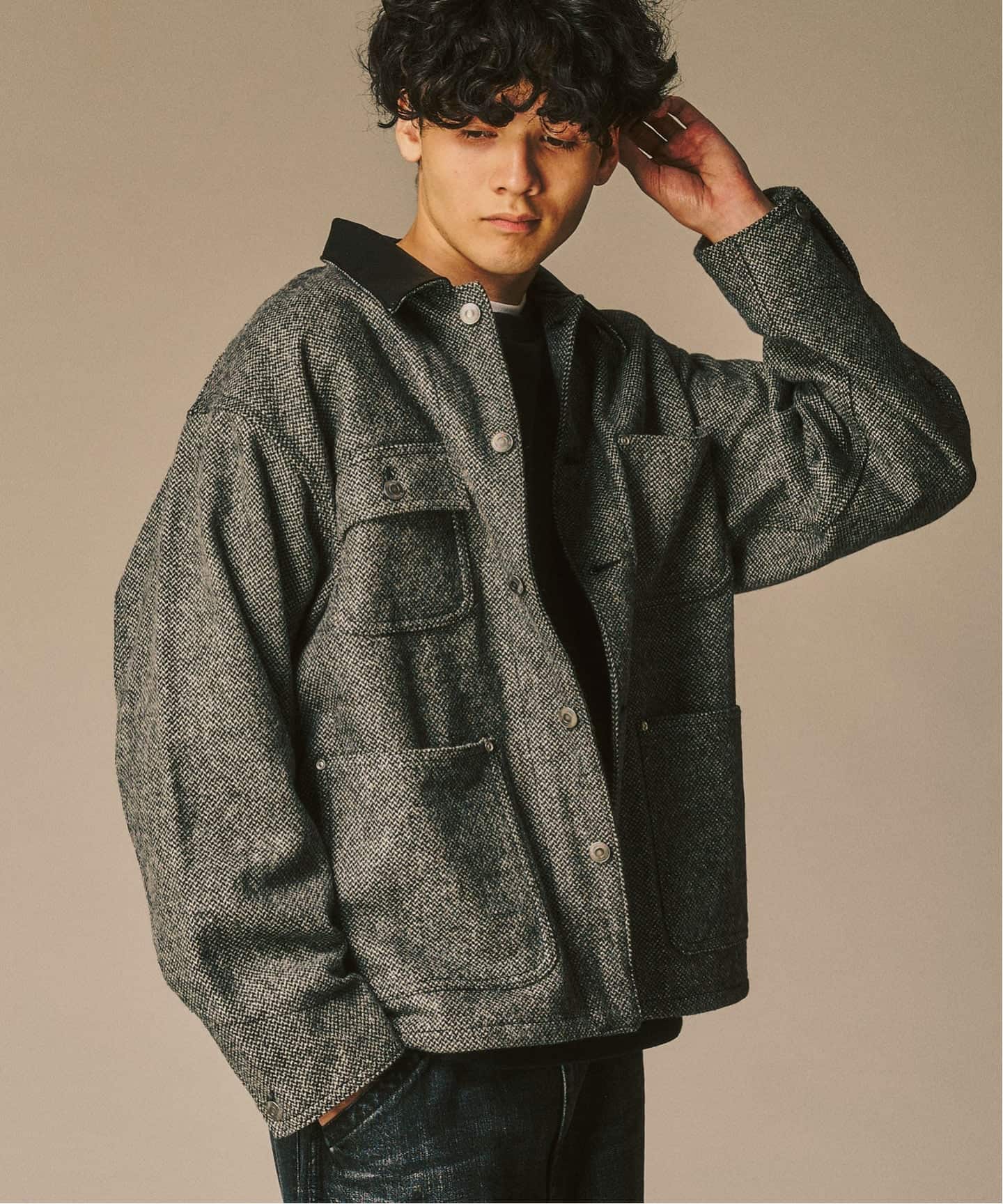 ウール混ツイードの重厚感と温もりが魅力のカバーオール。