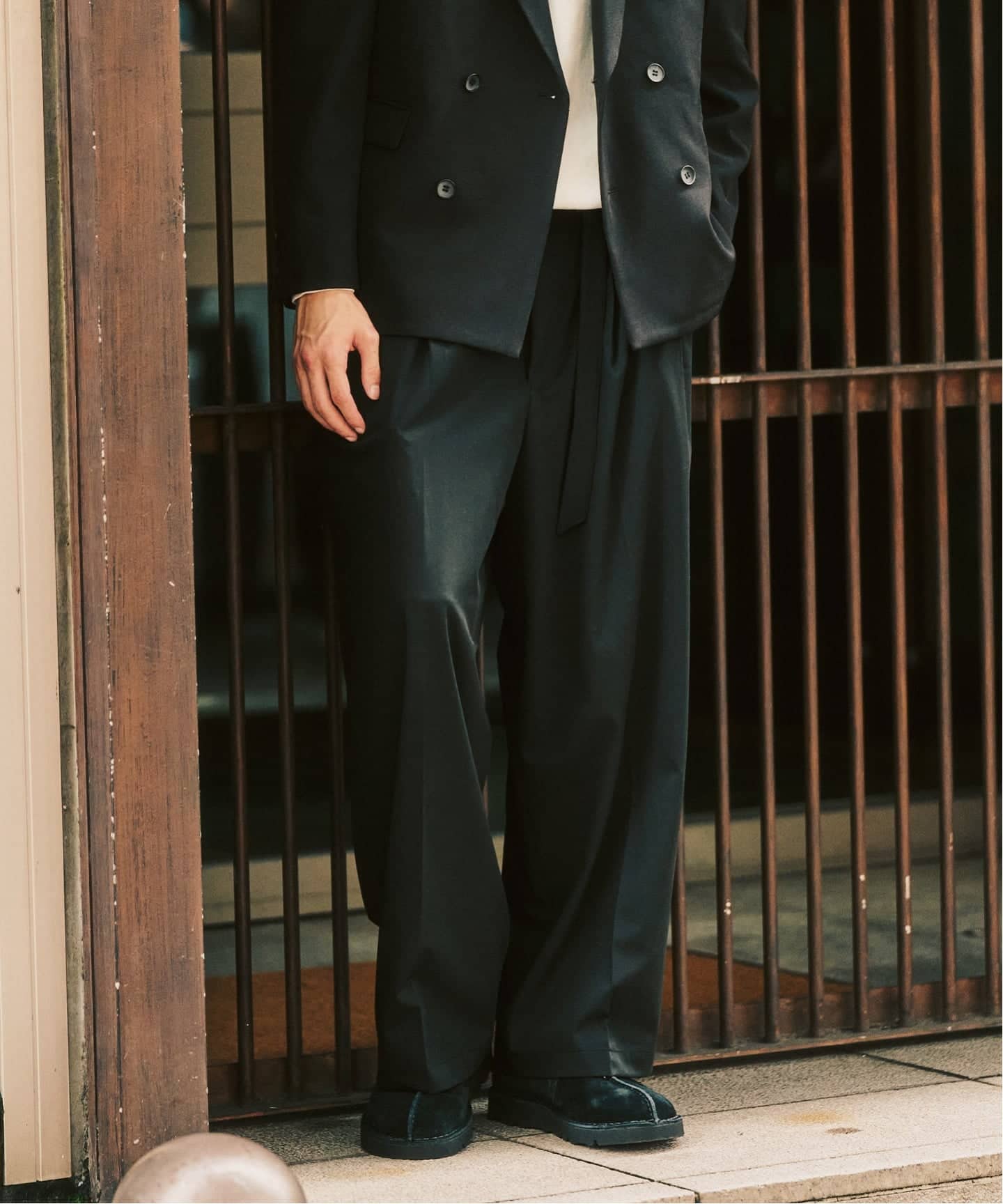 ウエストベルト付きで「穿きやすさ」と「キレイなワイドシルエット」が魅力の一本。タックインした際の腰まわりの印象も美しく、品よくまとまります。オールシーズン穿ける素材感で動いた時のドレープ感が上品な空気感を作り出してくれます!まさに大人が選ぶべき一本!