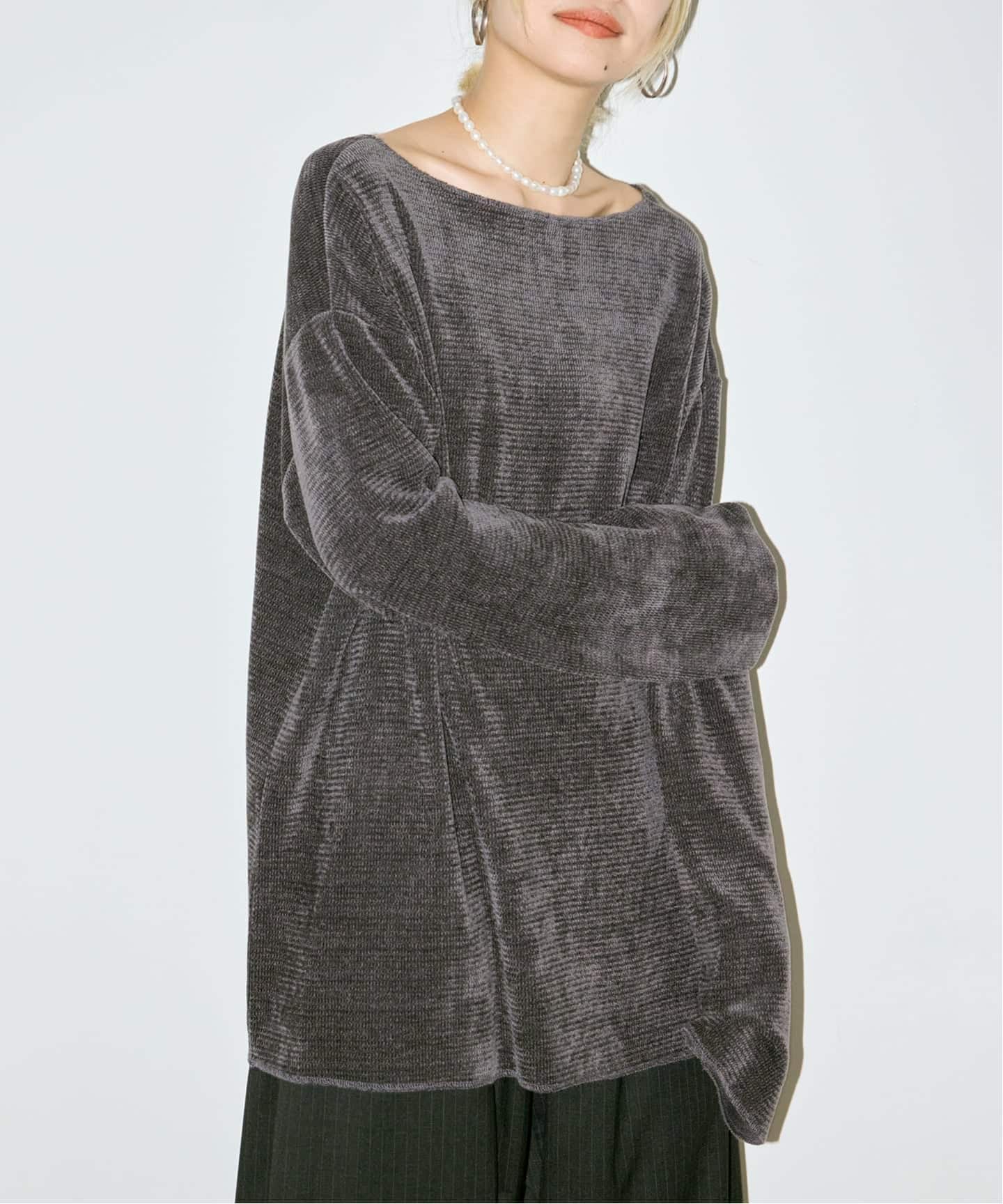 2.ルーズさを感じられるよう、肩周りやお袖の長さでルーズ感を。