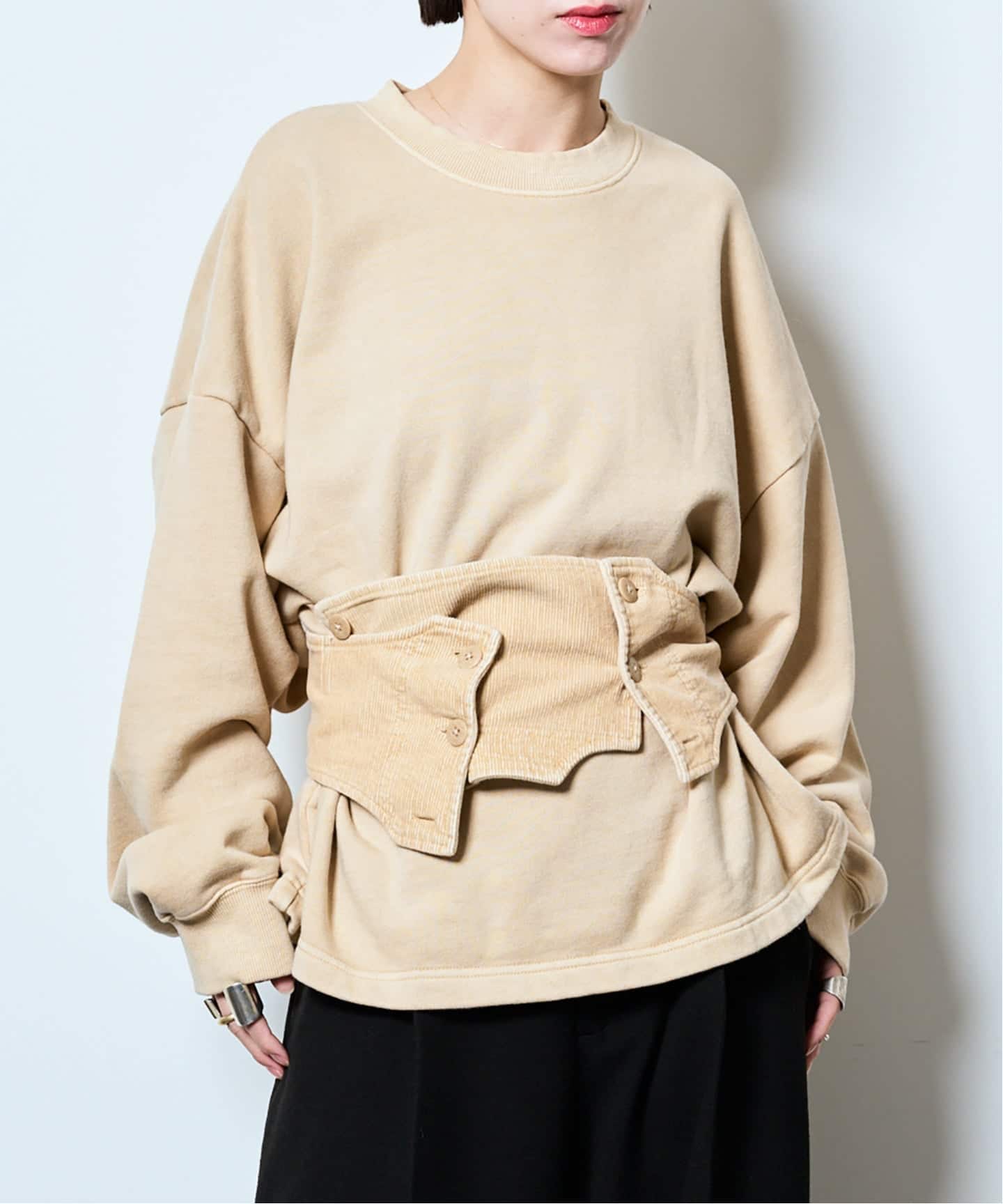 CITYSHOP完全別注スのヴィンテージ古着から着想を得たコルセットディテールがついたスウェットトップ。