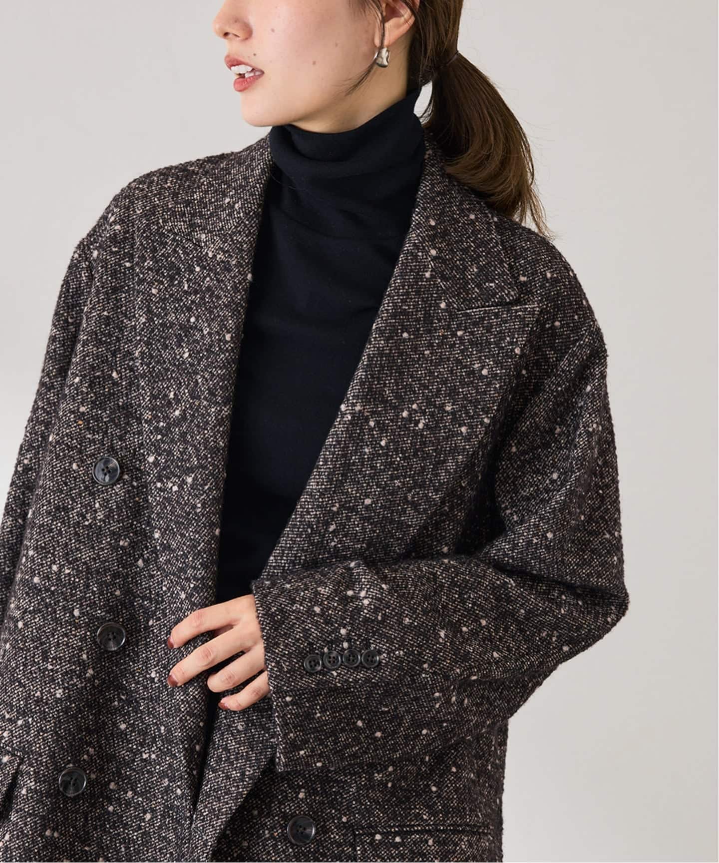 飽きのこないシンプルなデザインで、羽織ると自然と後ろに抜けるパターンにすることでニュアンス感のある印象に。
