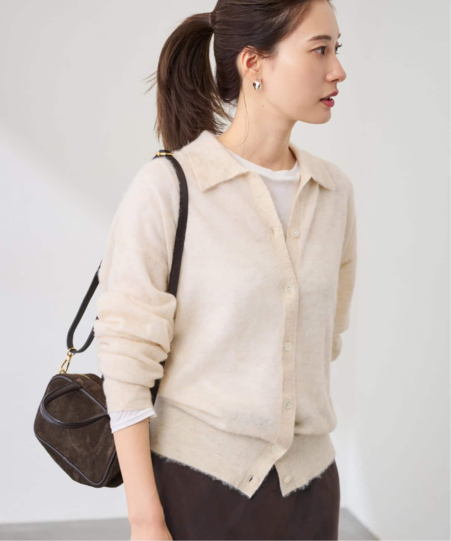 細番手のアルパカ混素材を使用した、ふんわりとした軽さが魅力のカーディガン。