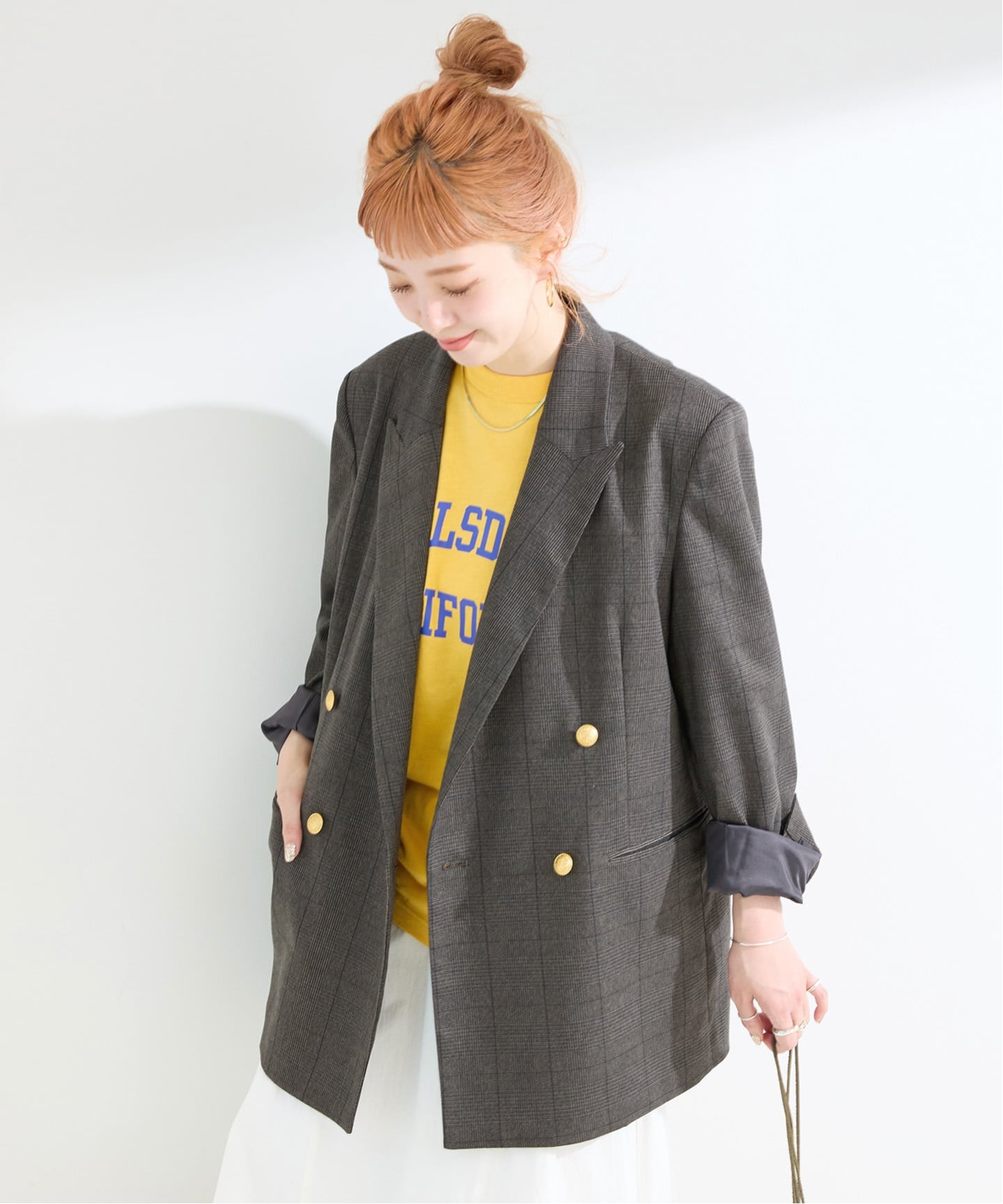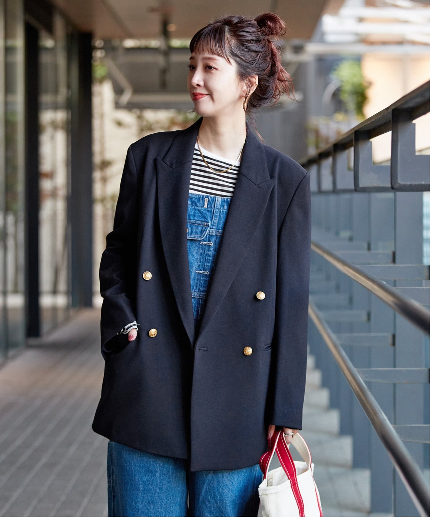 大人っぽく羽織れる、金ボタンがポイントのダブルブレストジャケット。