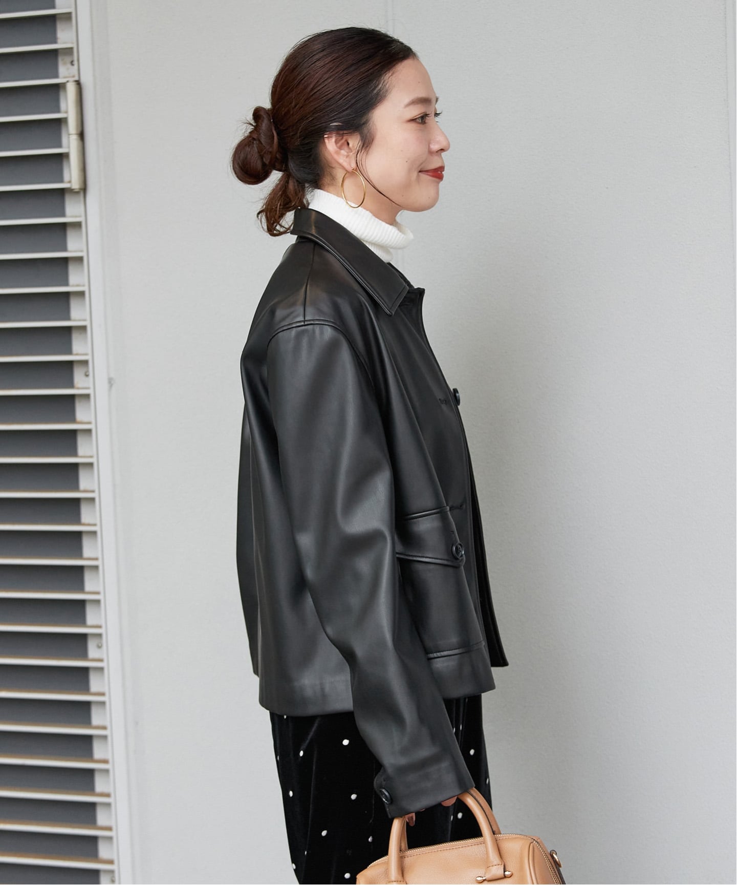 レザー見えながら、しなやかでソフトな風合いのフェイクレザーカバーオール。