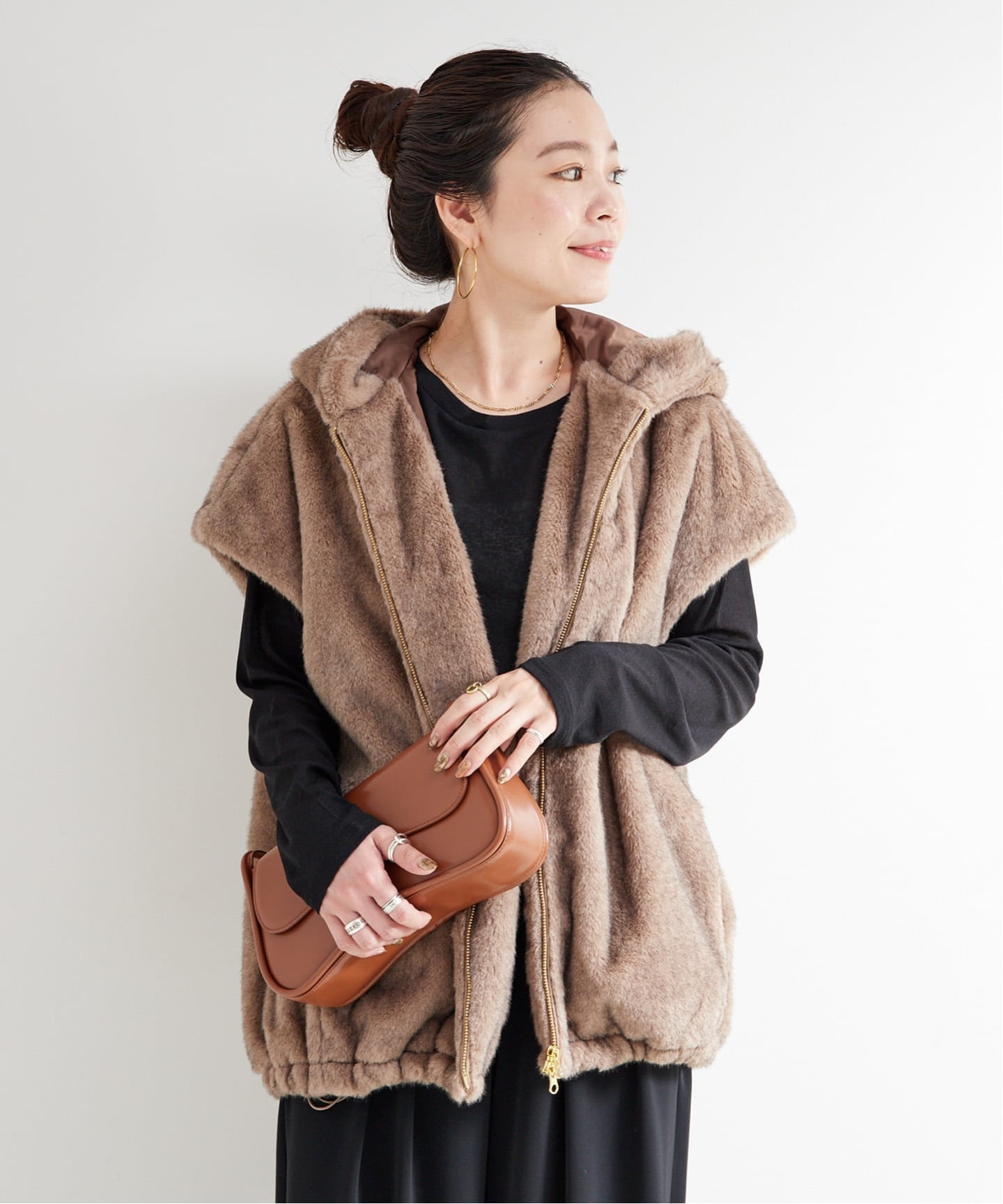ふわふわとした素材感が心地よいフェイクファーベスト。