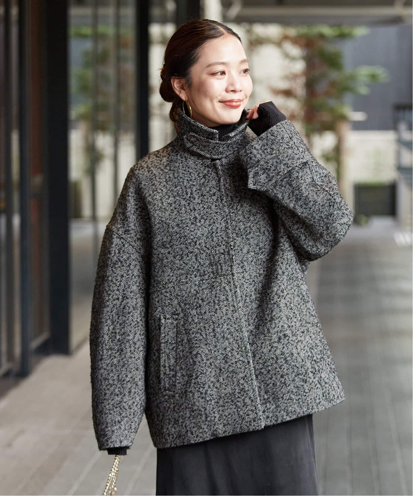 奥行きのある深みカラーが魅力のブークレツイルショートコート。