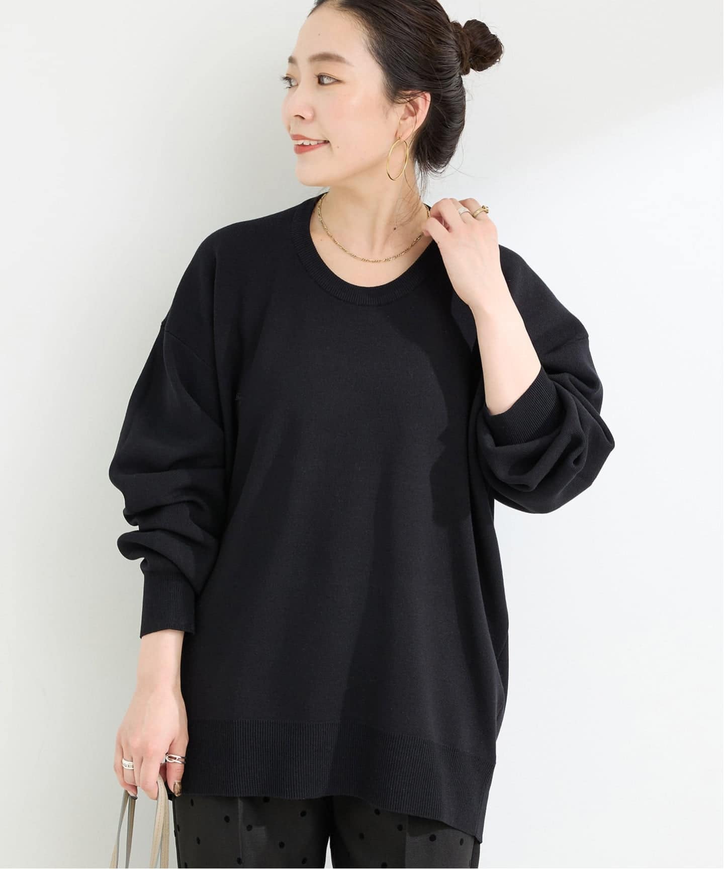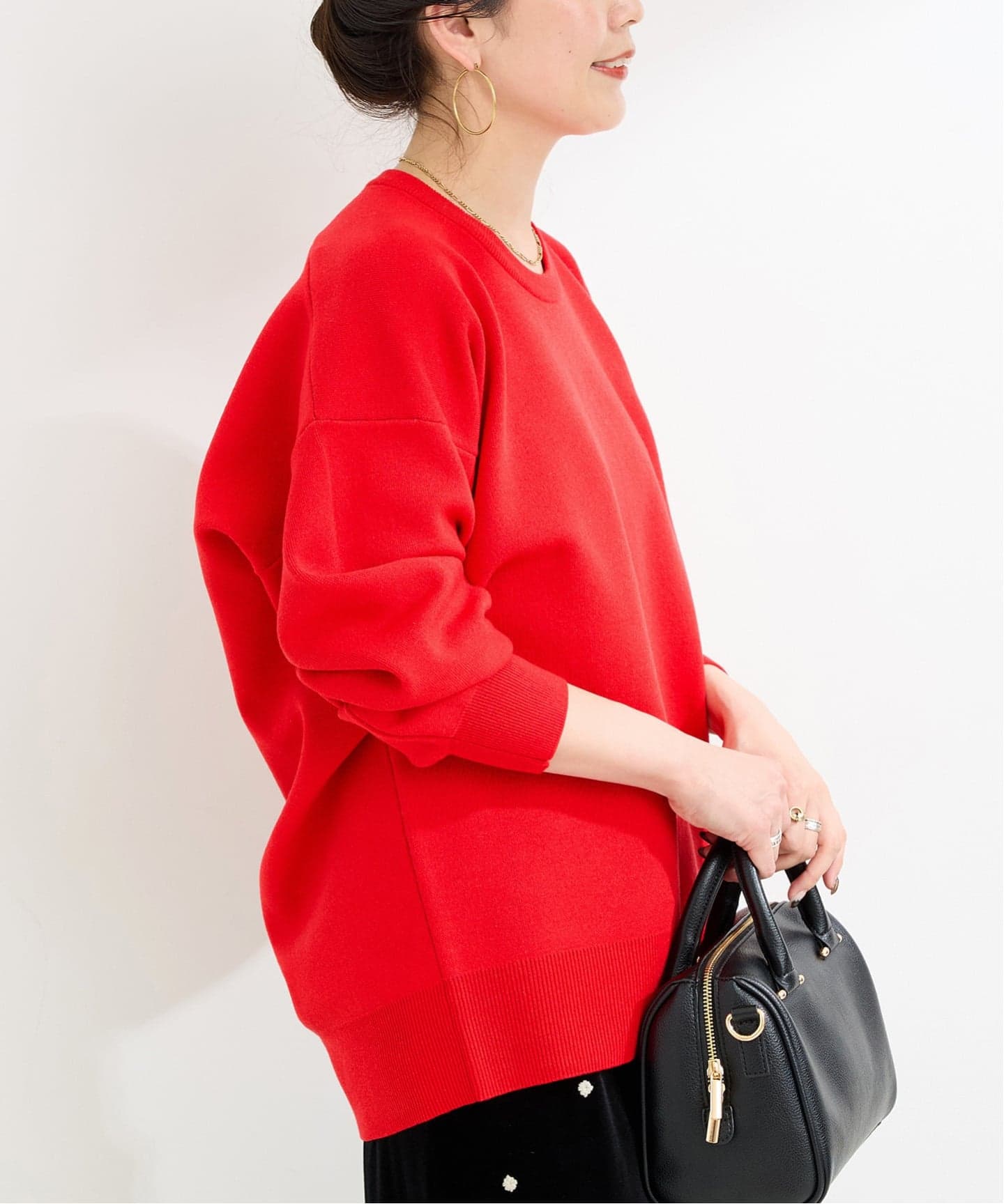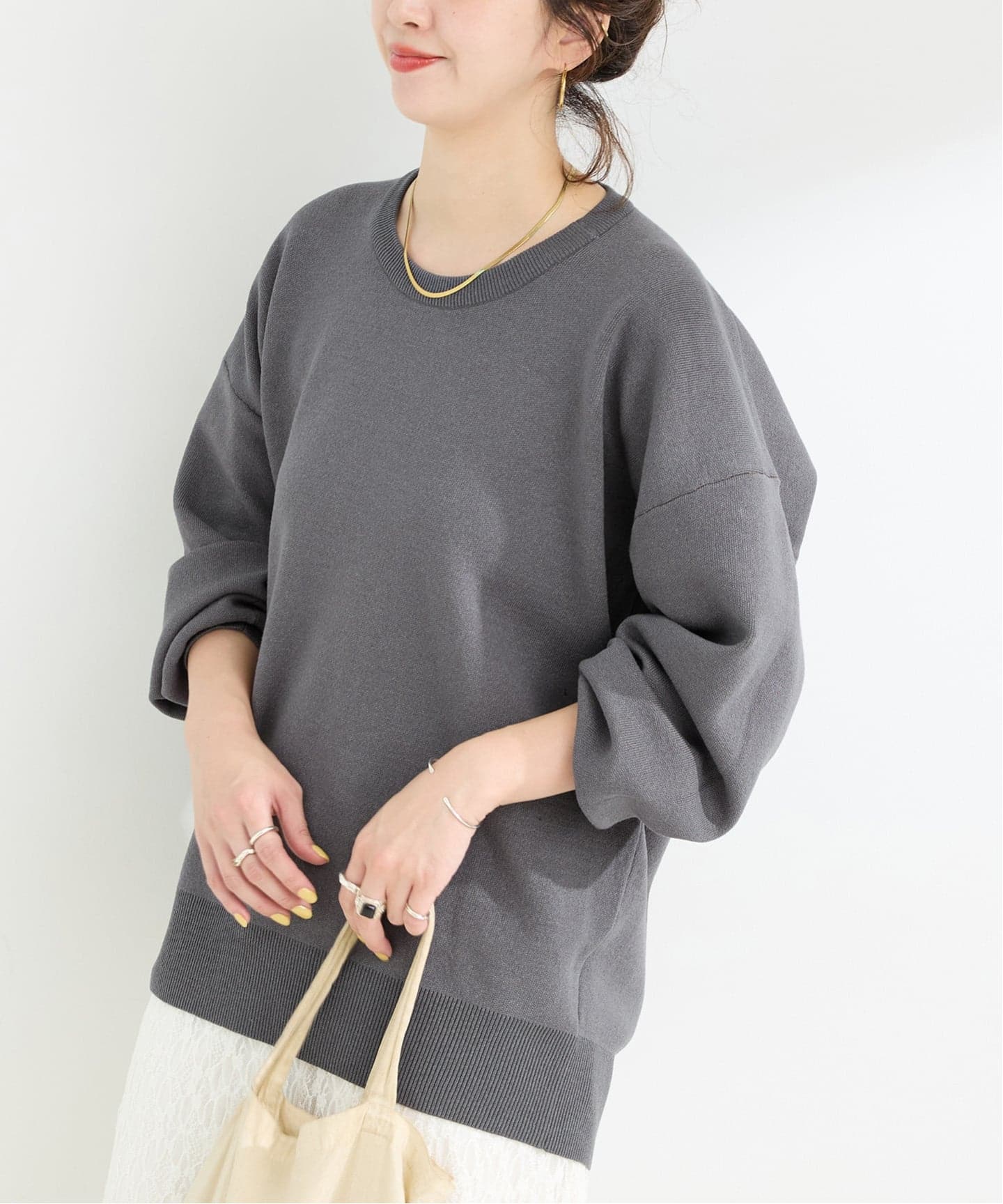 ほどよい肉感がたまらない変形シルエットのニットプルオーバー。