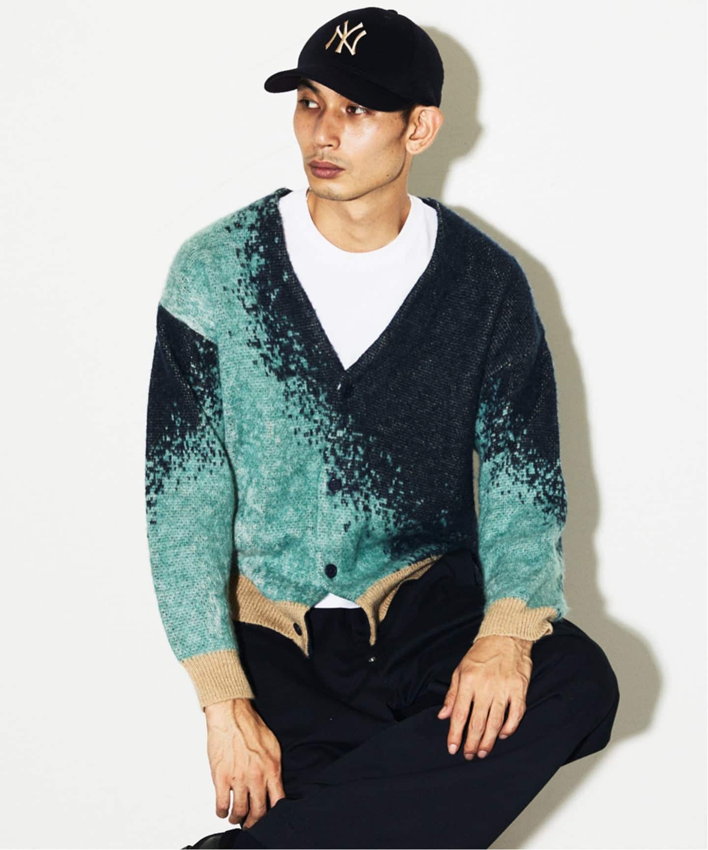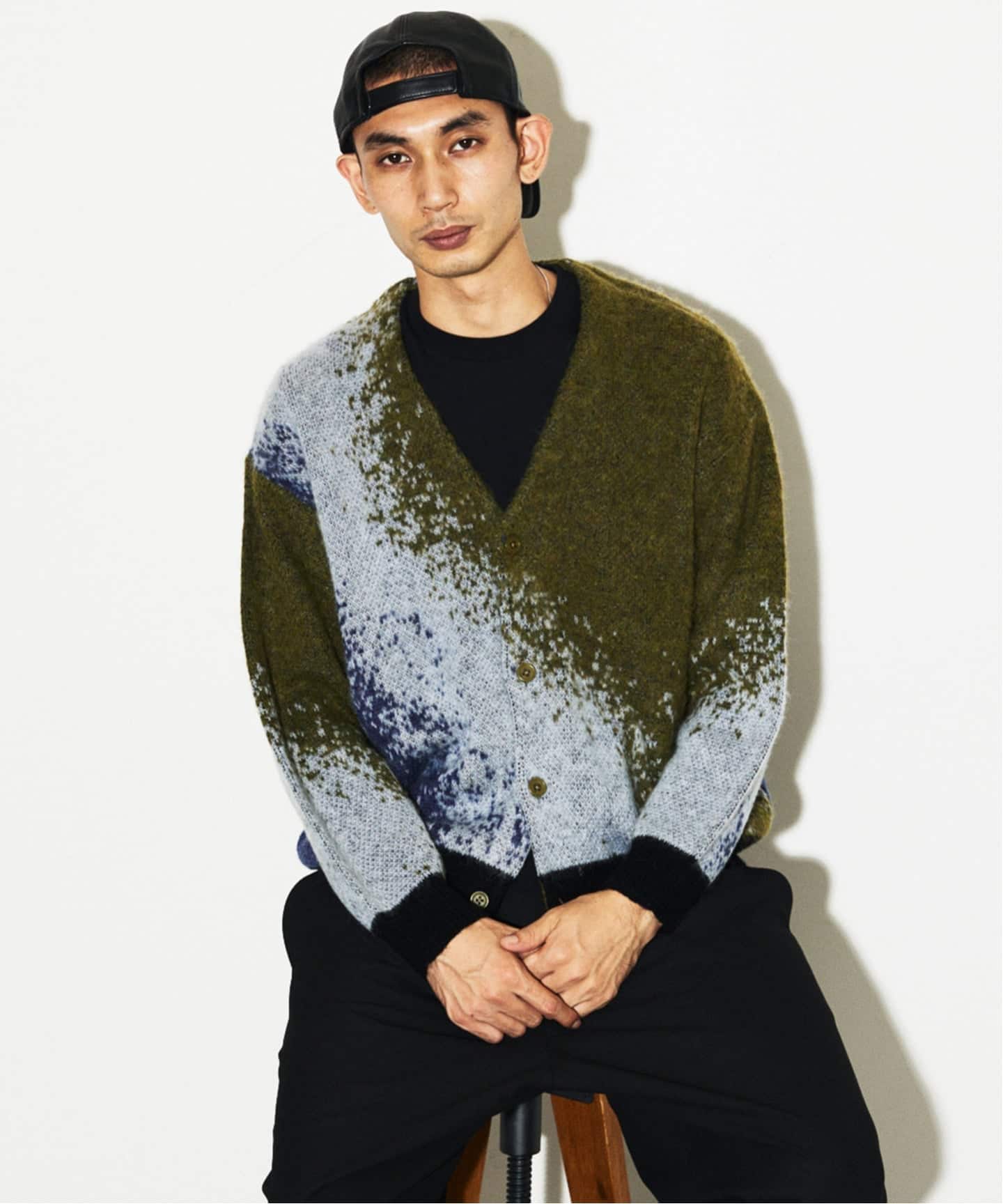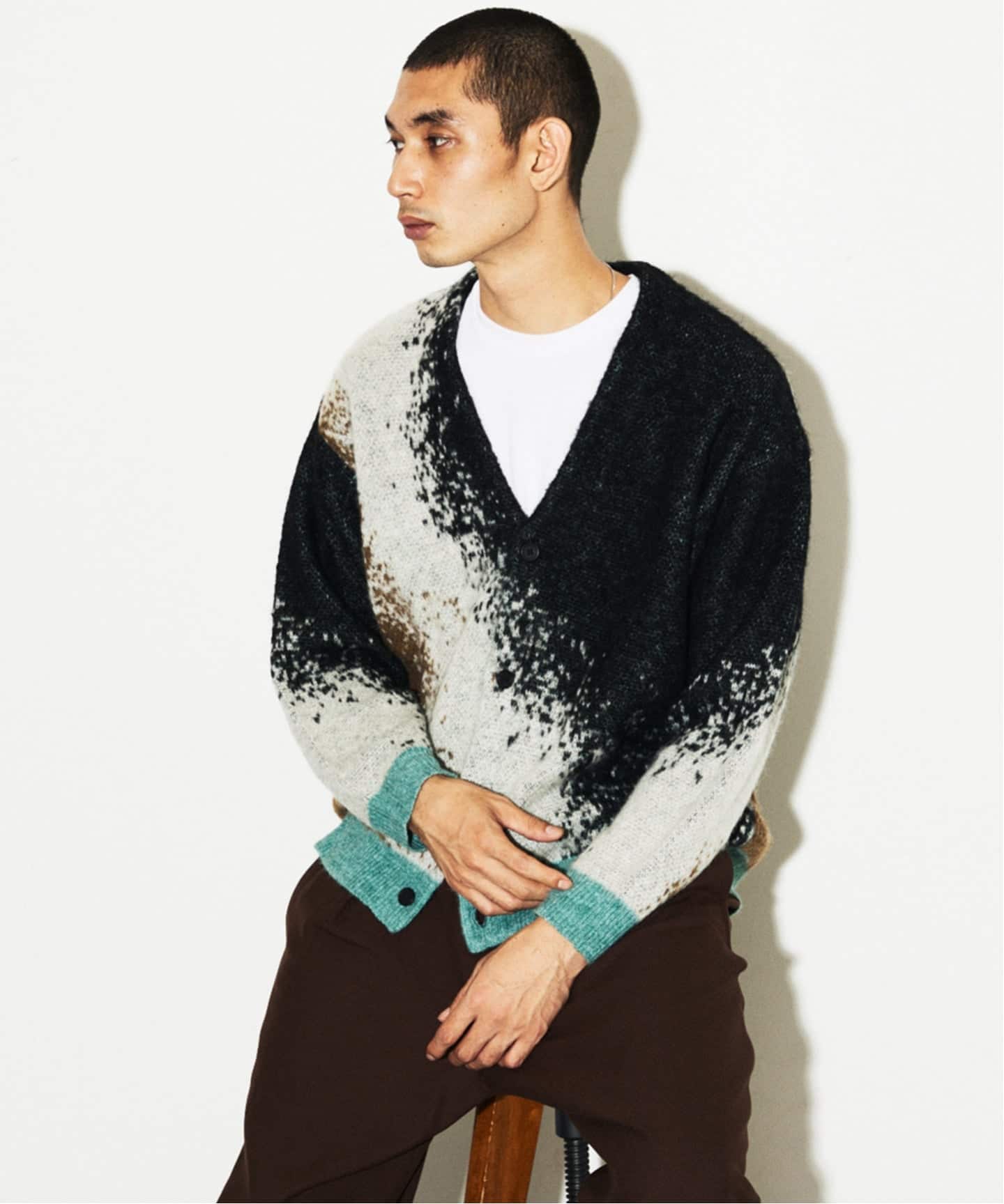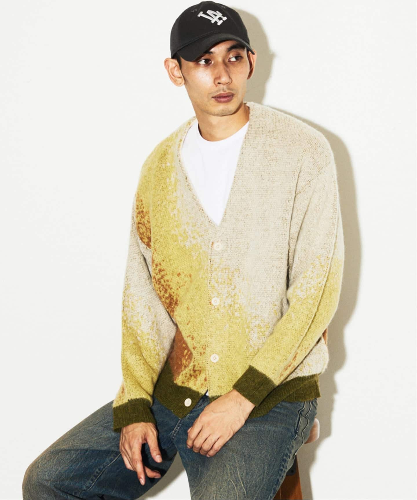 Stead定番のモヘアカーディガンを、オリジナルのスクエアパターンで表現した一着。