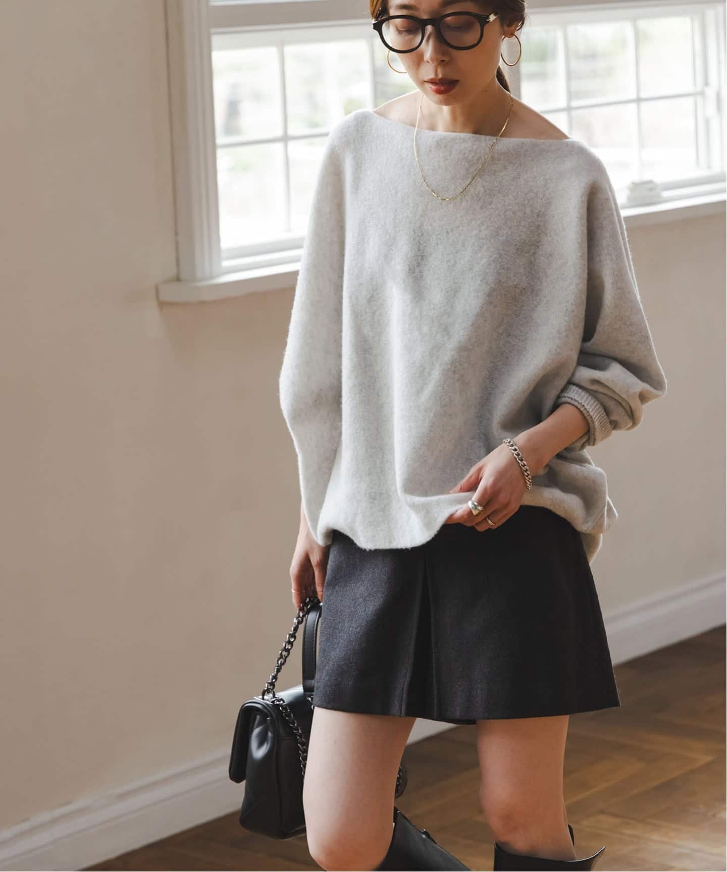 ワンショルダーにもなる広めのボートネックや身体が泳ぐほどの緩やかなシルエットで、女性らしく纏えつつもこなれ感たっぷりに決まる優秀な1枚です。