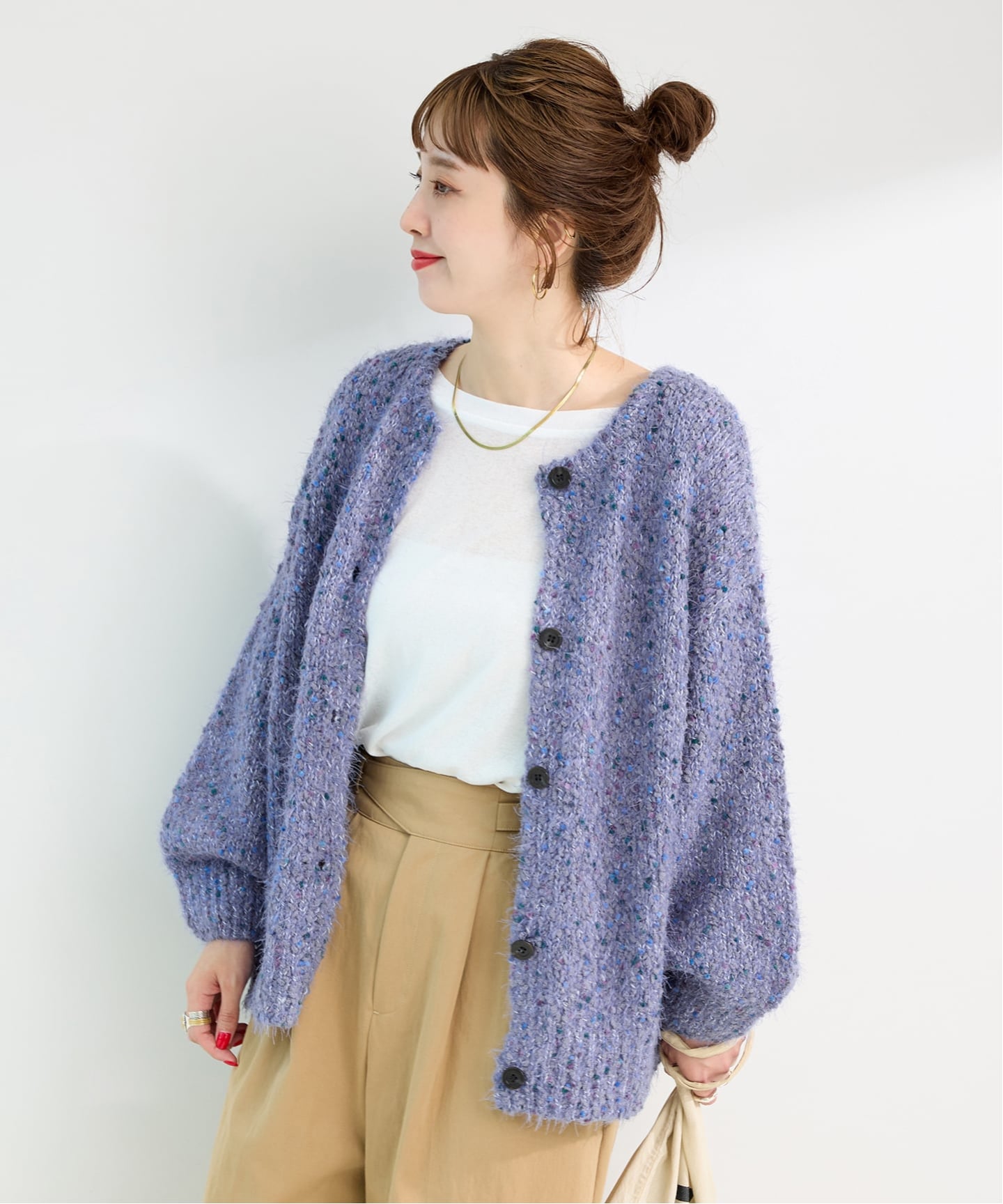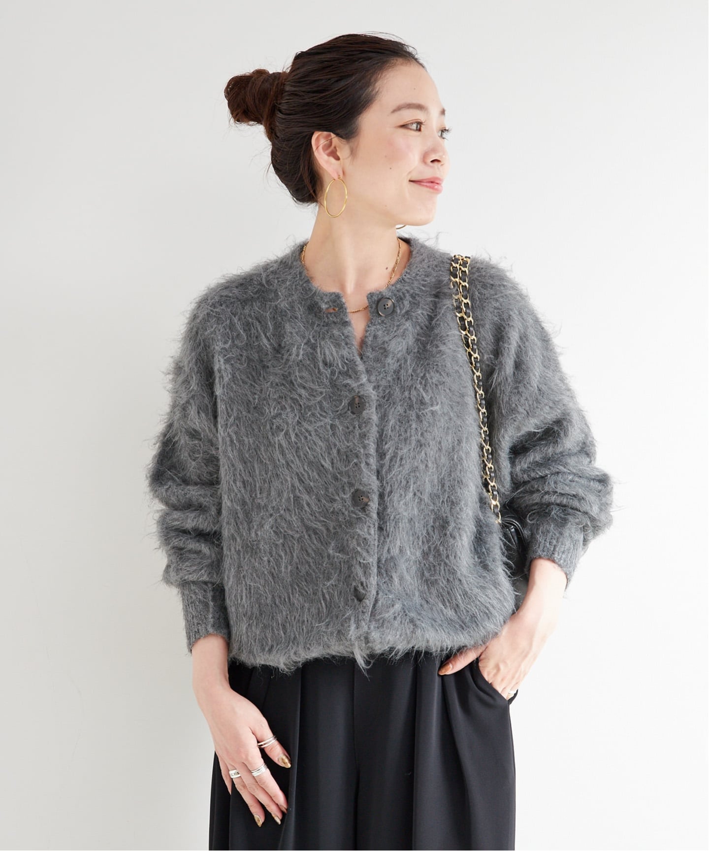 旬のふわもこ感を楽しみたい方へおすすめな「シャギークルーニットカーディガン」