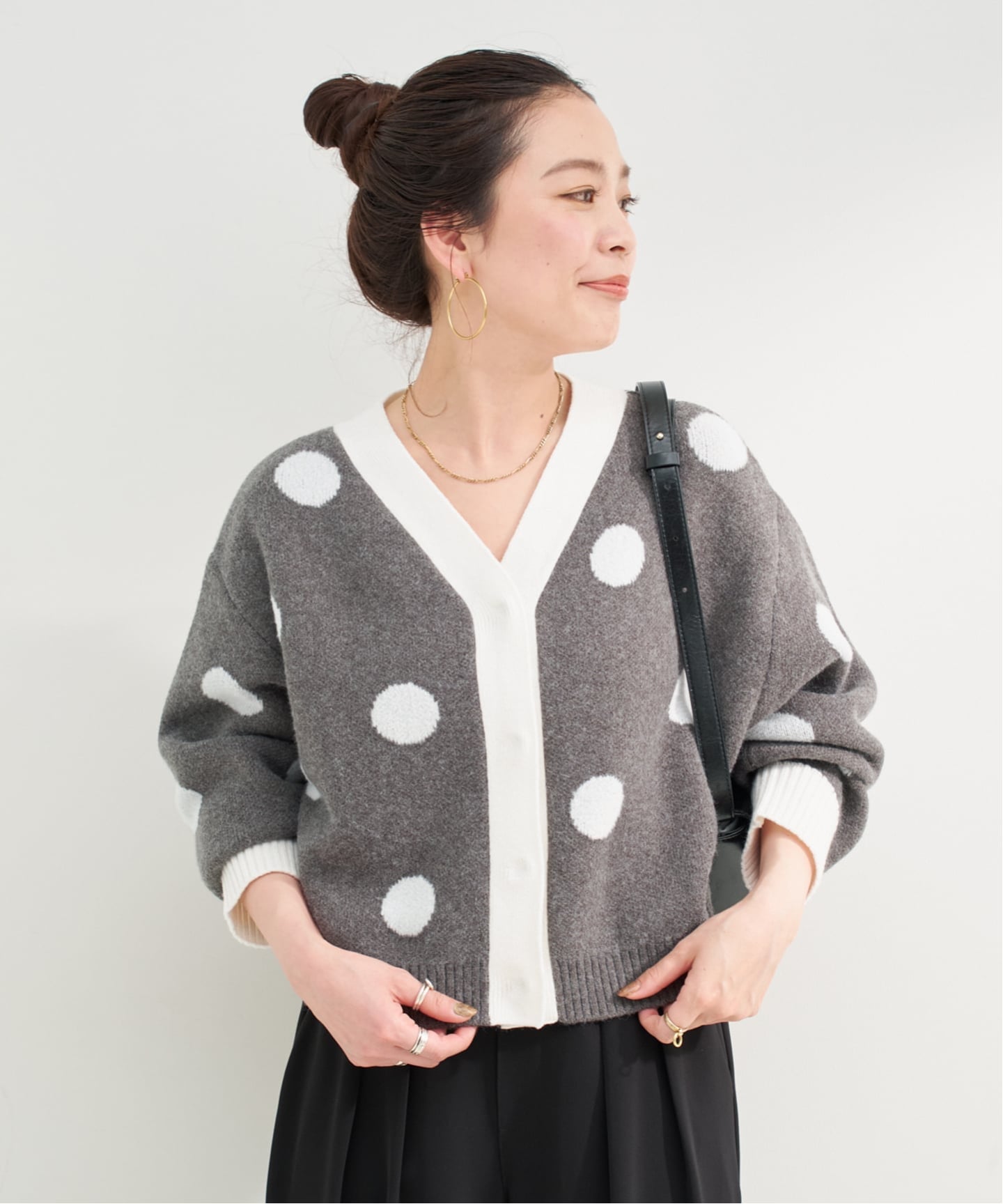 遊び心のあるドット柄が、コーデに抜け感をプラスしてくれるアイテム。