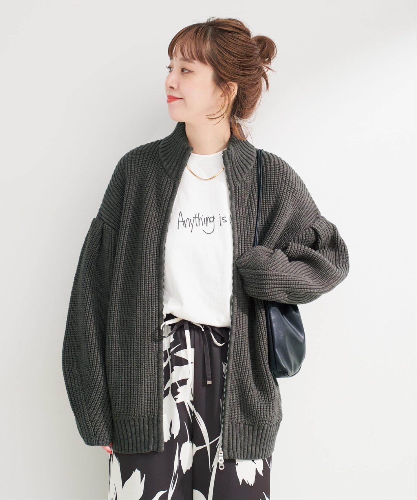 ショート丈なのでボリュームのあるボトムスと好相性です◎