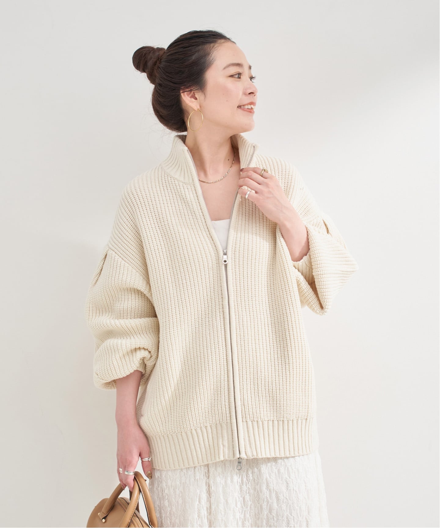 |畦ジップカーディガン