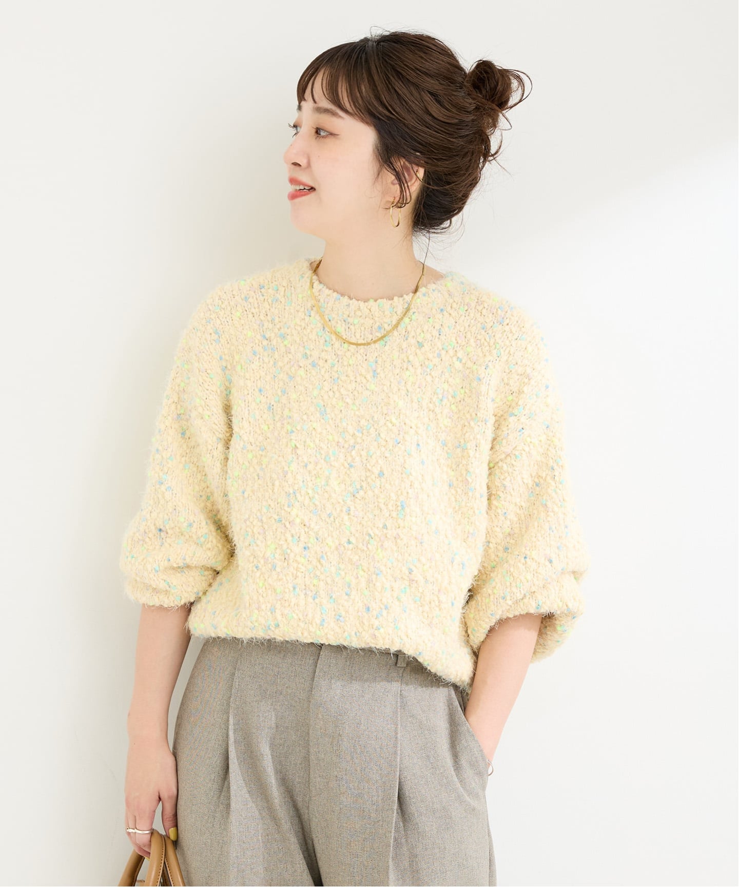 トレンドの表情あるデザインを取り入れたい方へおすすめなのが「ポコポコヤーンミックス2WAYカーディガン」