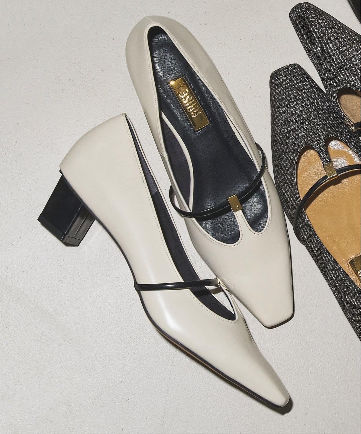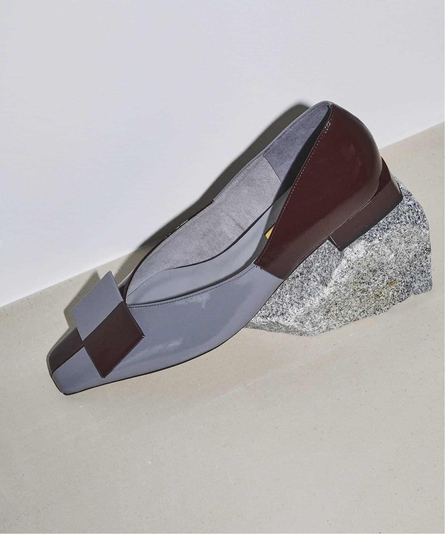 シンプルなプレートモチーフのパンプスを大胆にカラーブロッキングし、モードに履ける1足に仕上げました。