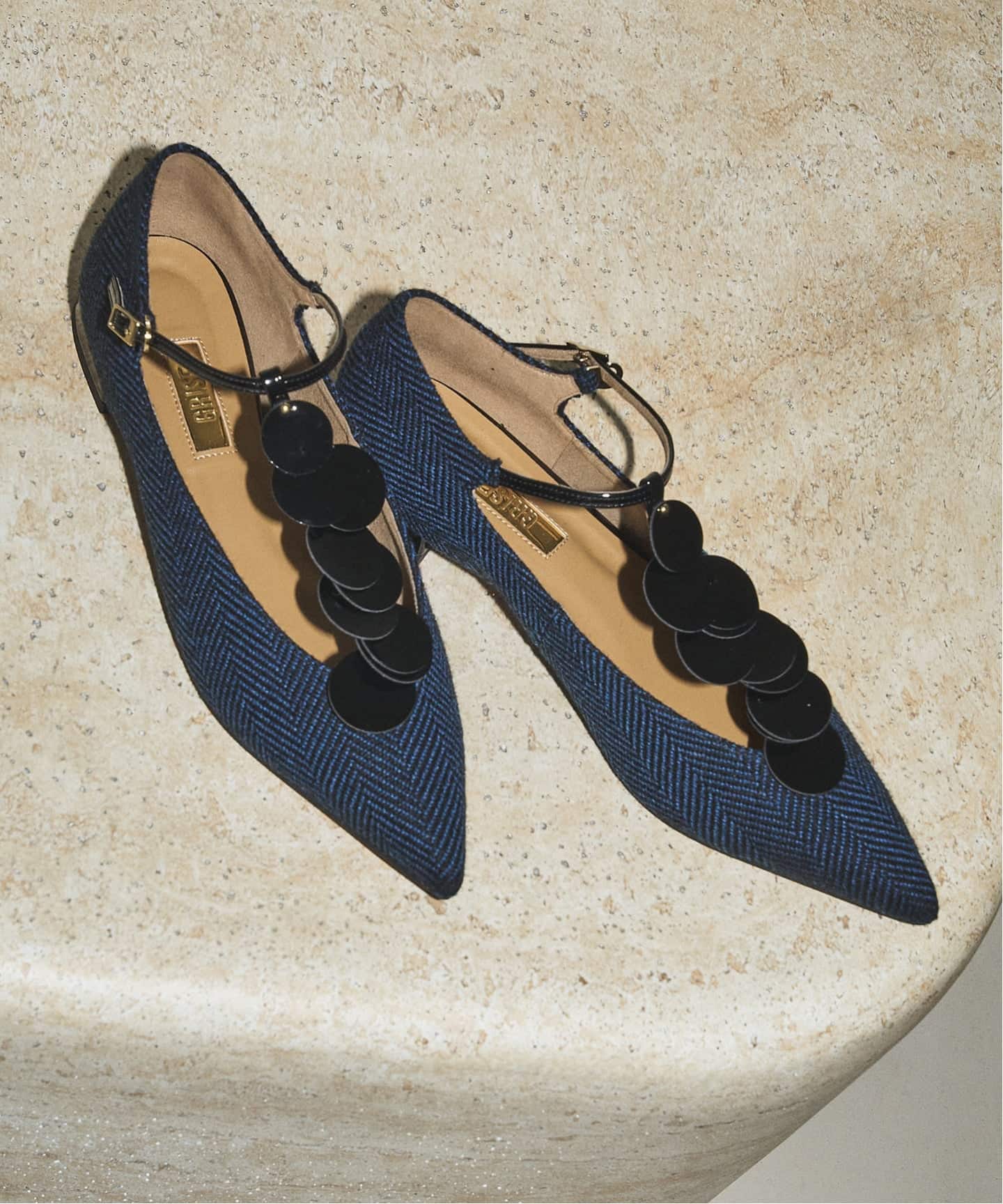 エッジを効かせたポインテッドトゥと動きのあるディテールで、足元に華やかさを演出してくれる1足です。