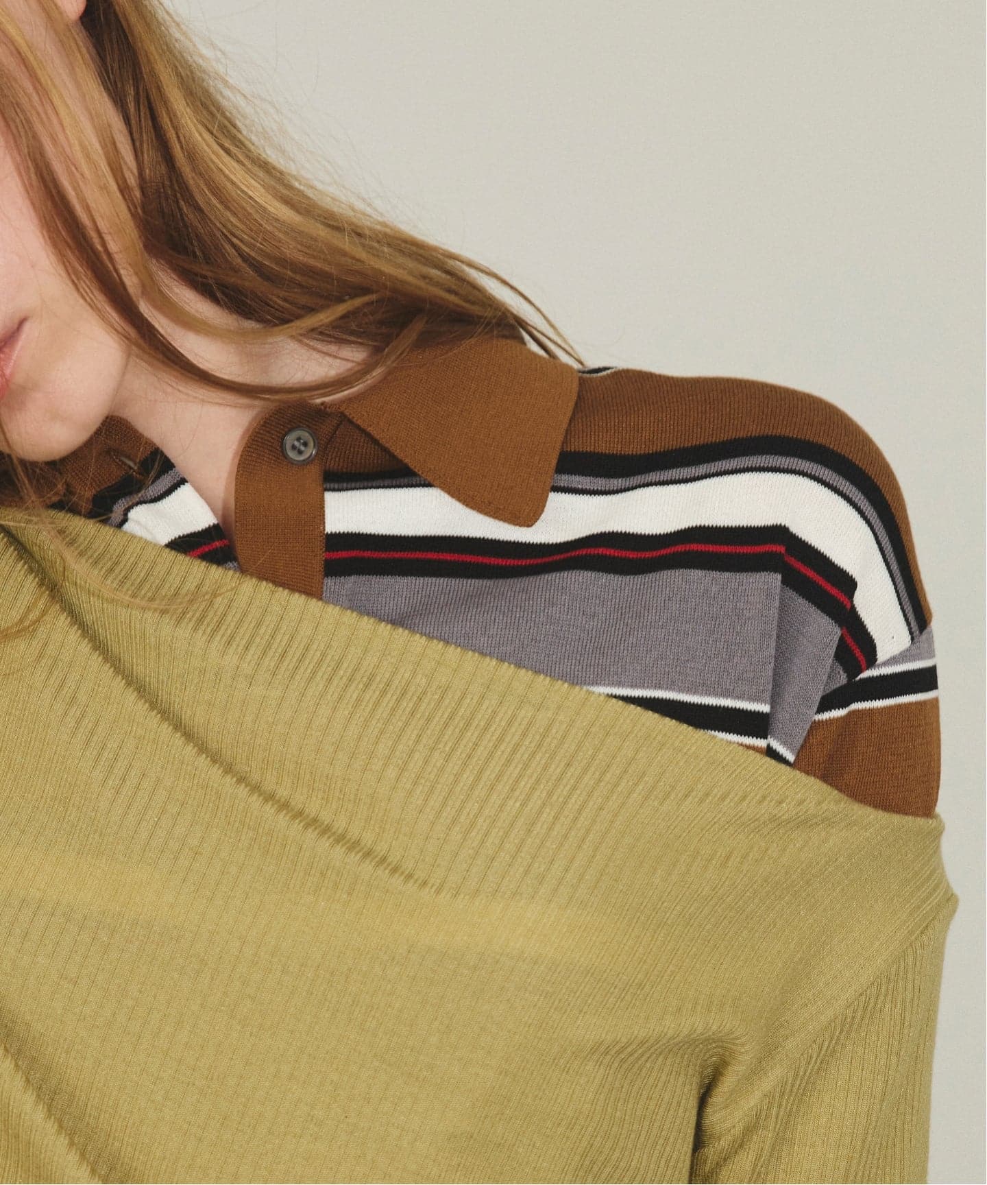 ランダムピッチのボーダーが印象的なポロシャツニットに、2色のチュールを使ったスカートを合わせて。