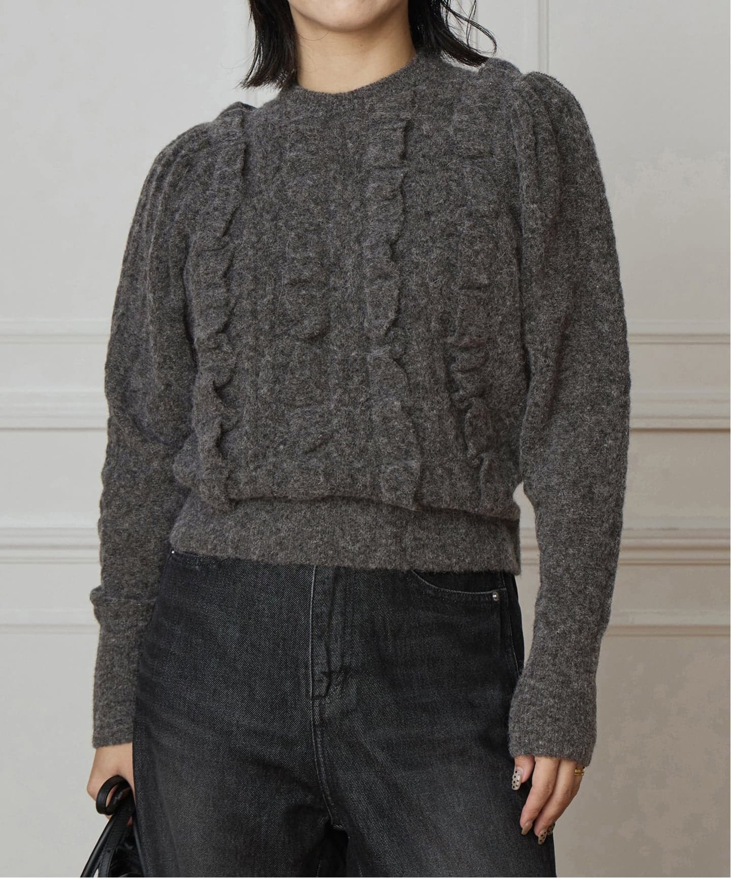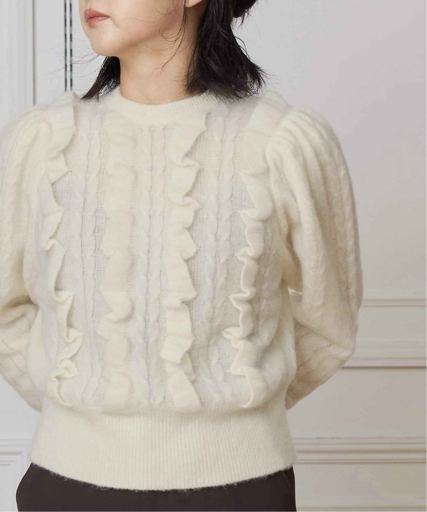 フリルとケーブルを組み合わせたアルパカMIXのニット。