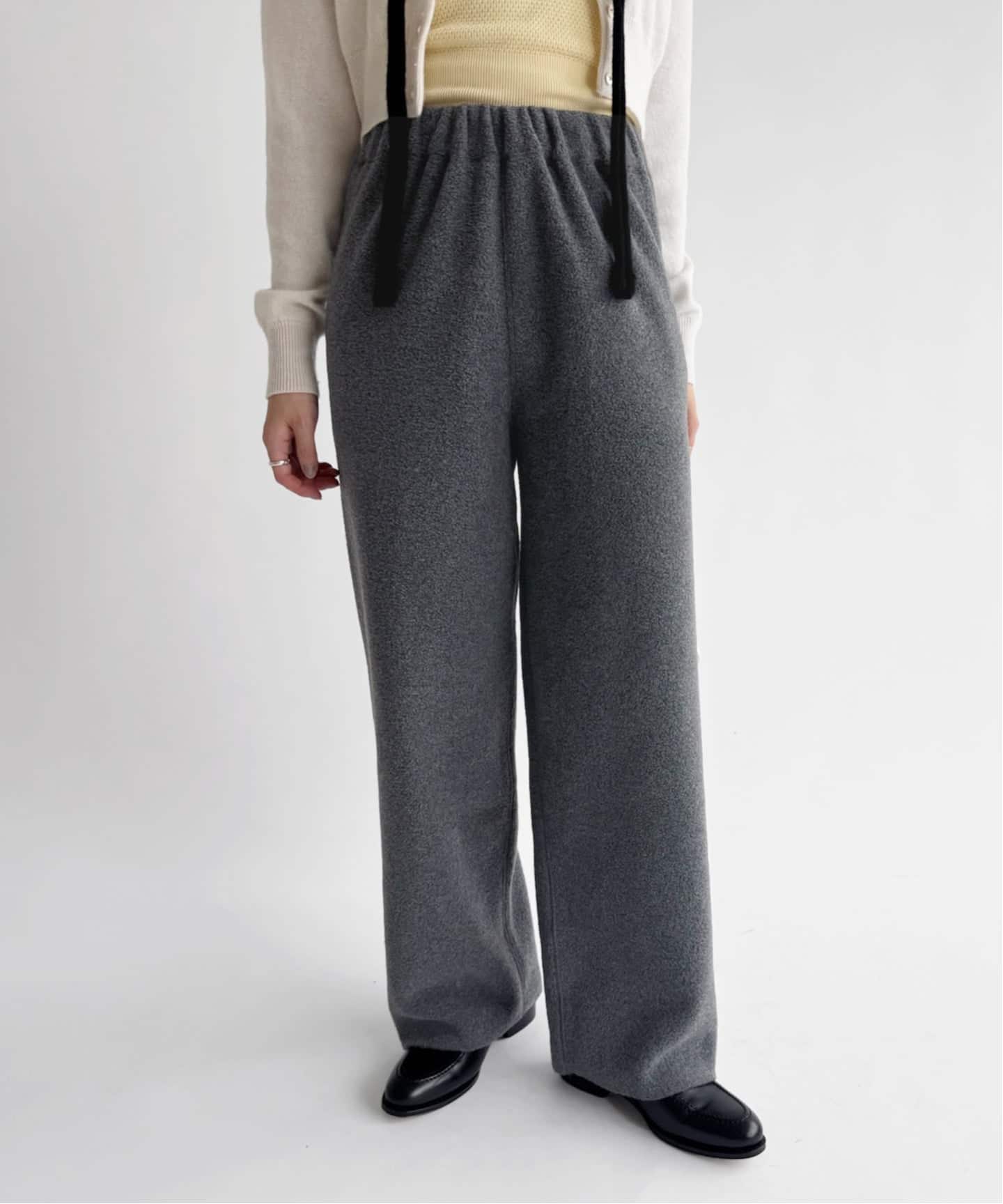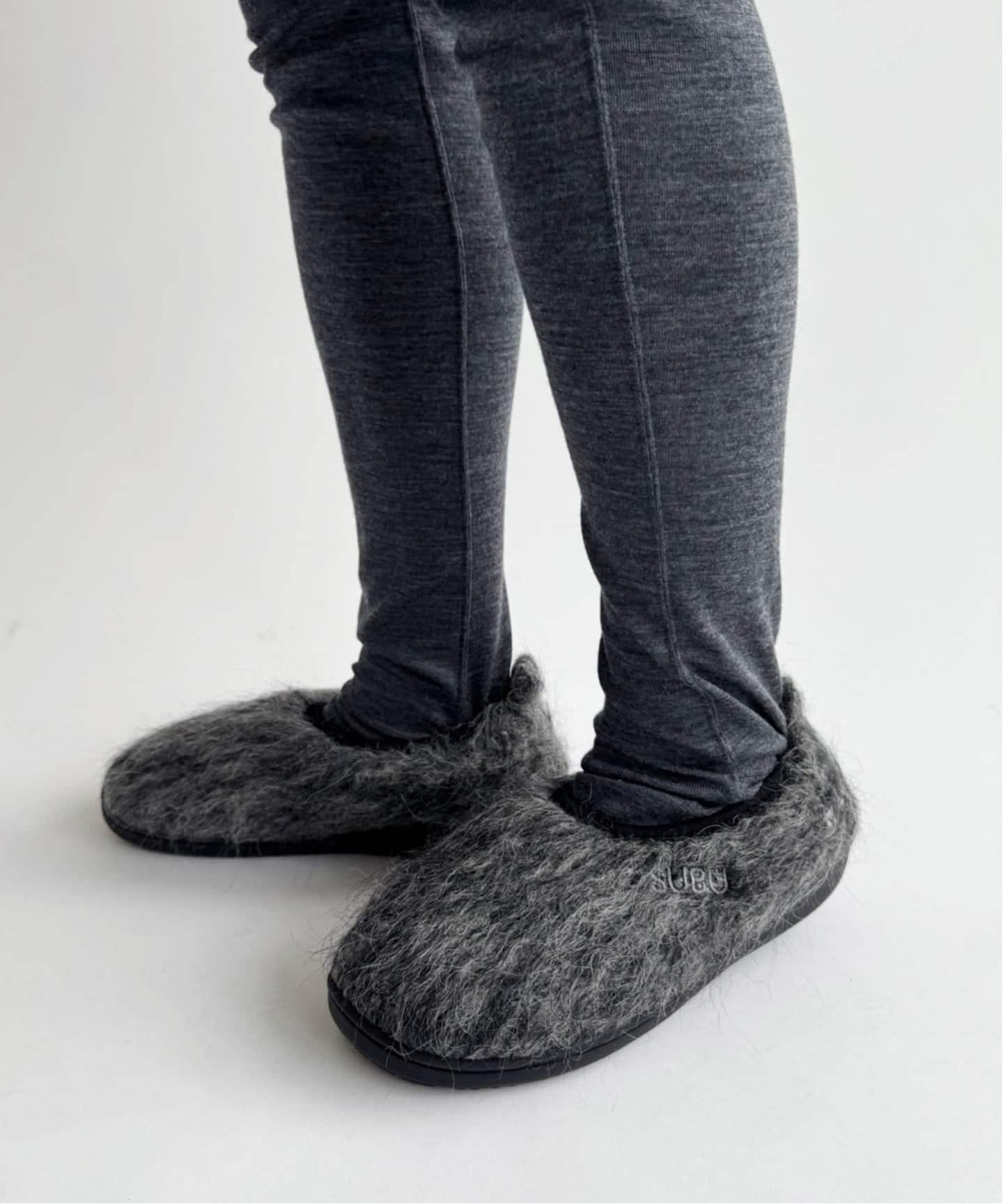モヘアのような上品な質感のウール生地を使用した、柔らかいグレーの色合いが、冬の足元に静かな存在感を漂わせます。