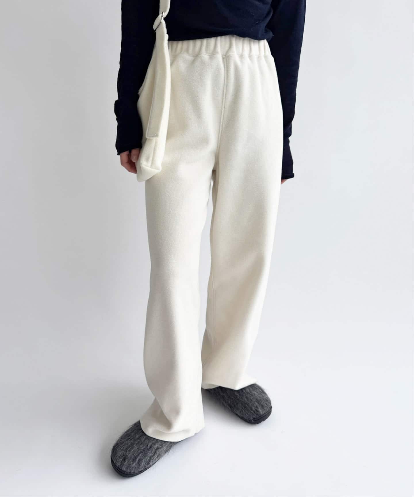 すとんとまっすぐなシルエットで、フリースなのにすっきりと見える優秀パンツ。