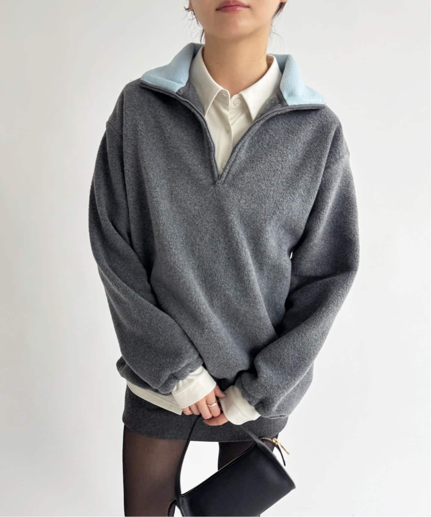 ハーフジップのプルオーバーは衿の内側がバイカラーになっています。