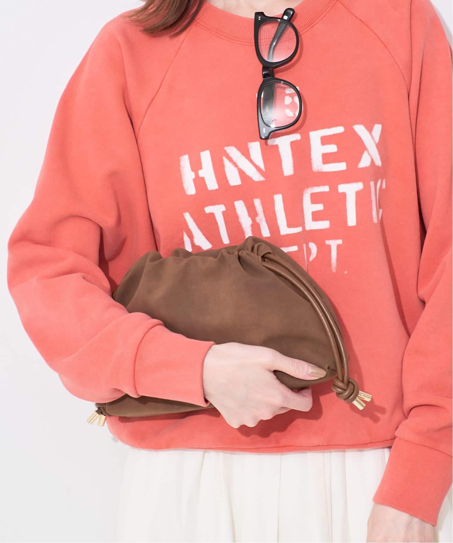 ファーバッグやメタルフレームのメガネで、程よく遊びのある印象に。