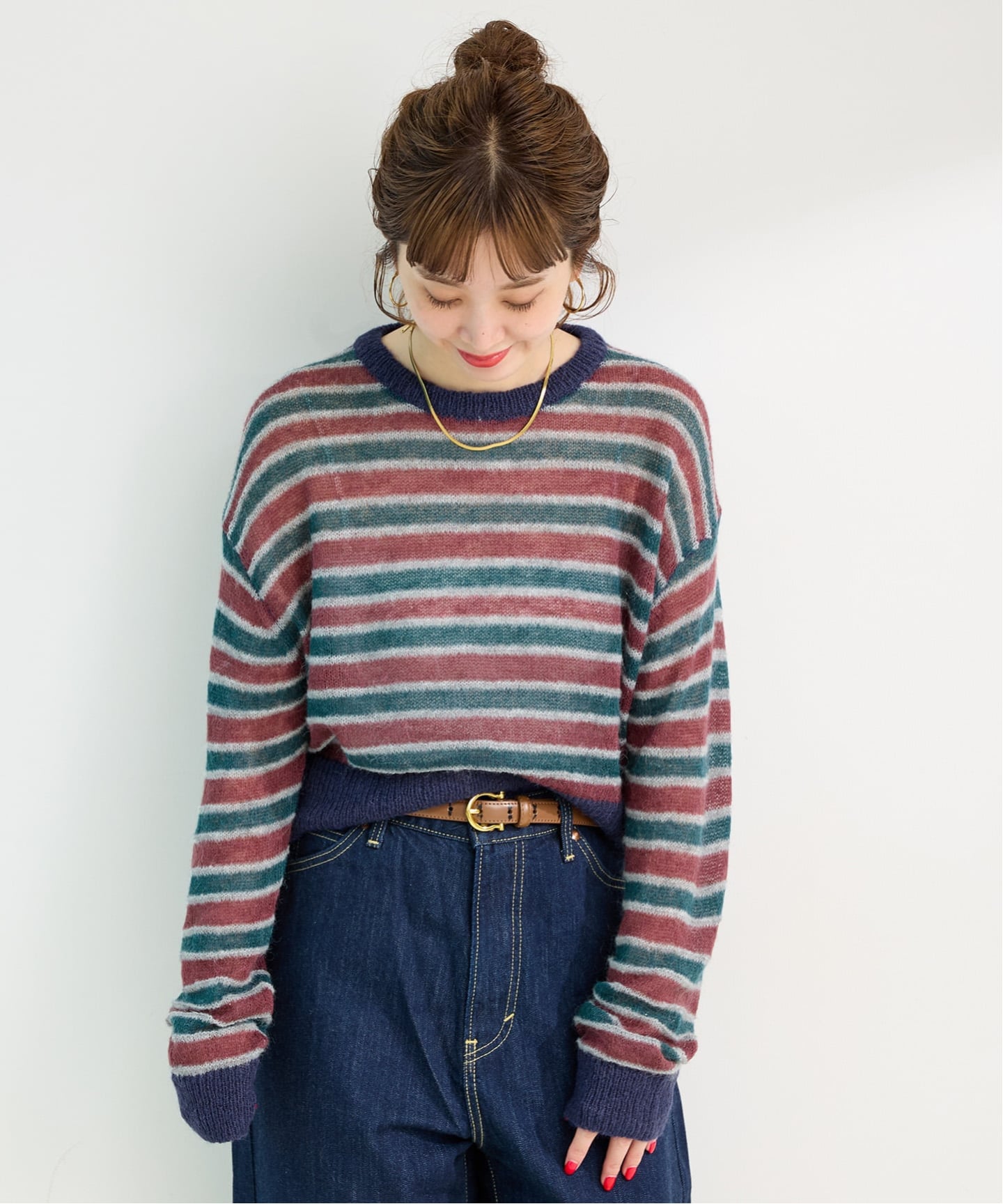 配色/ボーダーの太さを変えた見え方がポイントで、シアー感があるので今時期からちょうど良くスタイリングに取り入れれるアイテム。