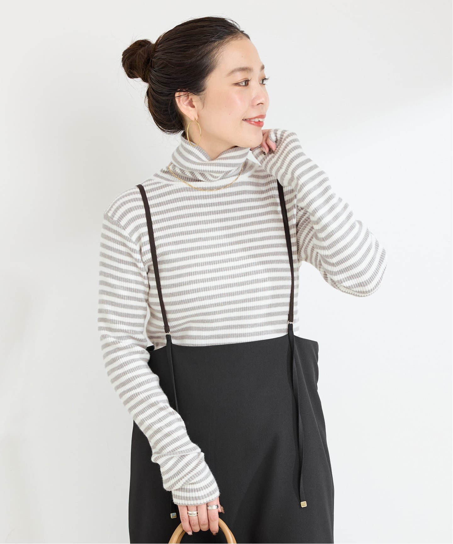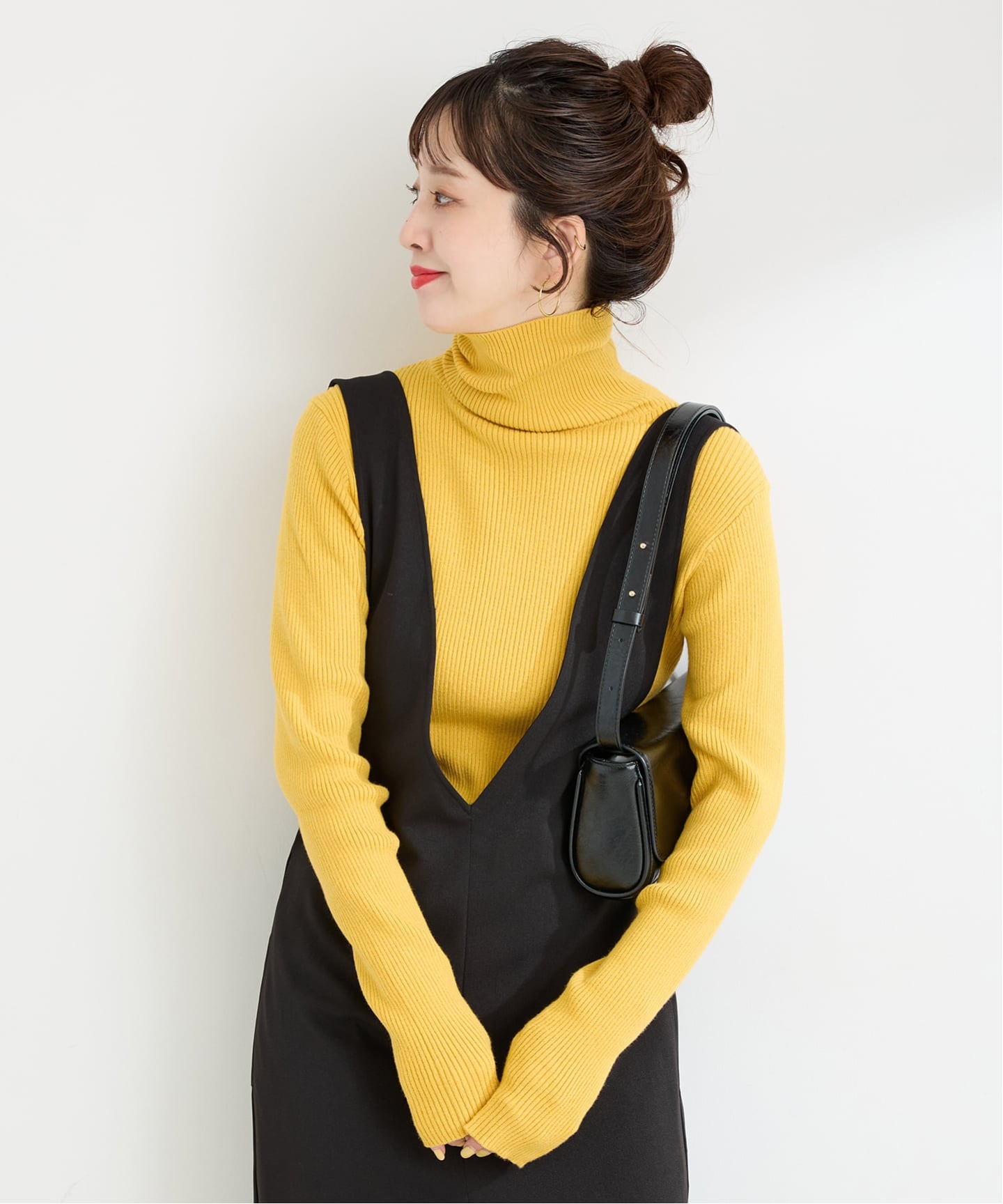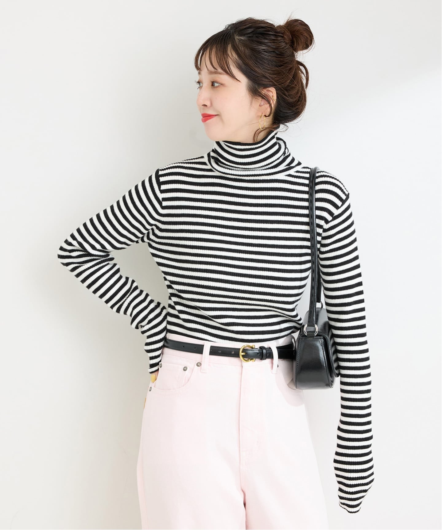 すっきりと身体にフィットするサイズ感がインナーとしても使いやすい「タートルリブニット」
