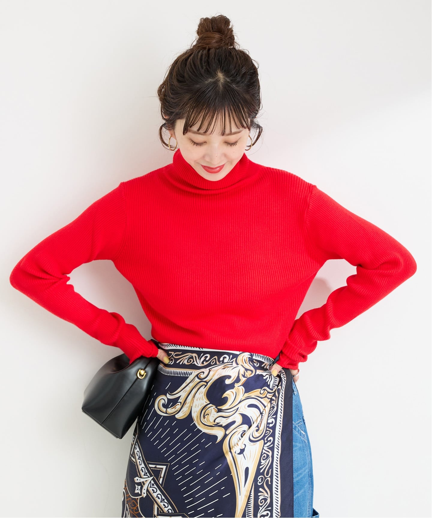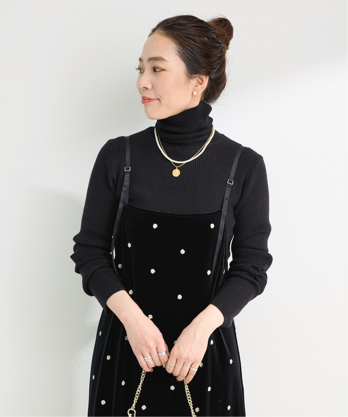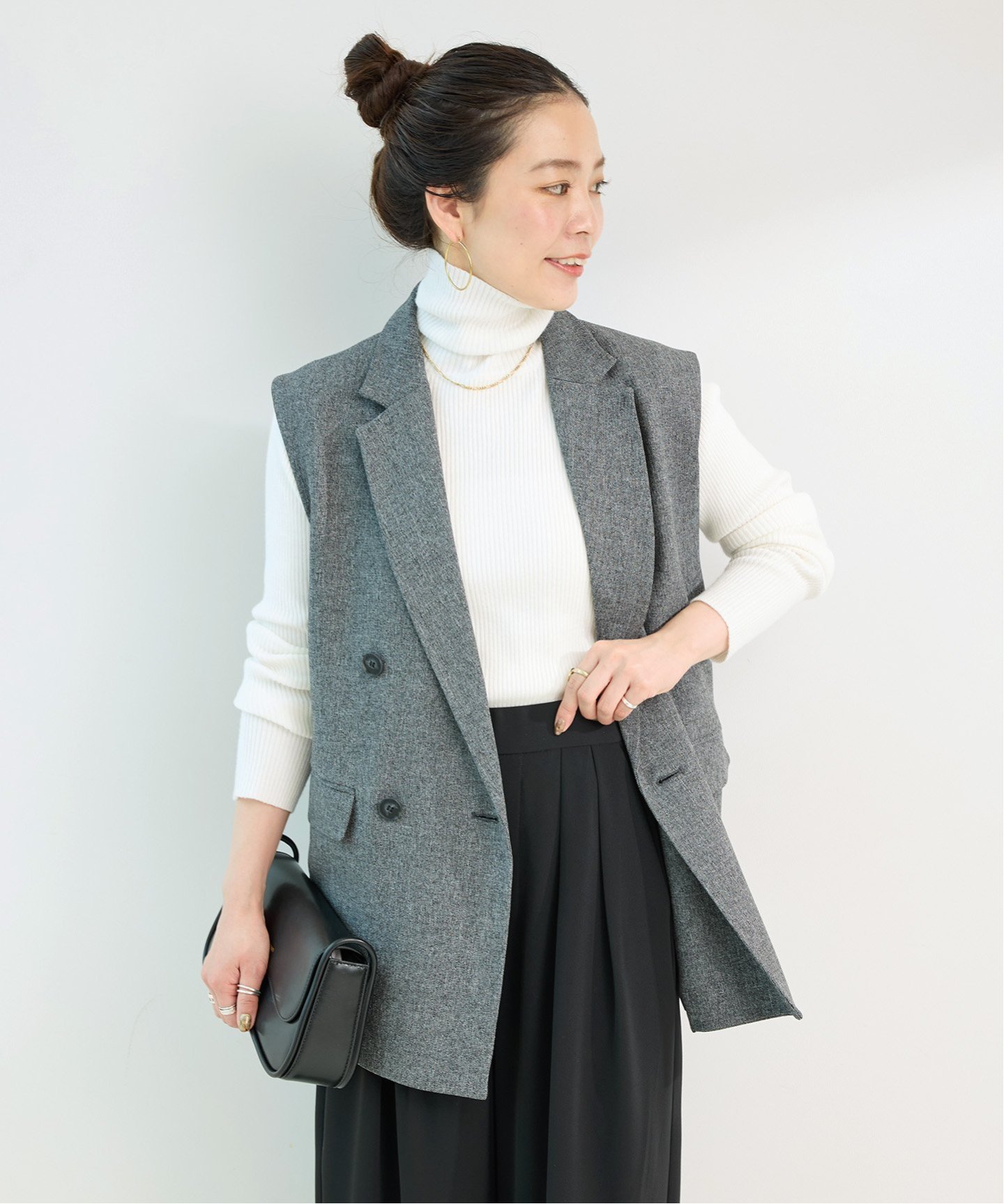すっきりと身体にフィットするサイズ感がインナーとしても使いやすい「タートルリブニット」