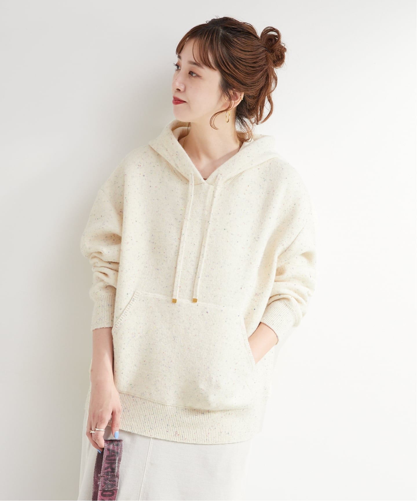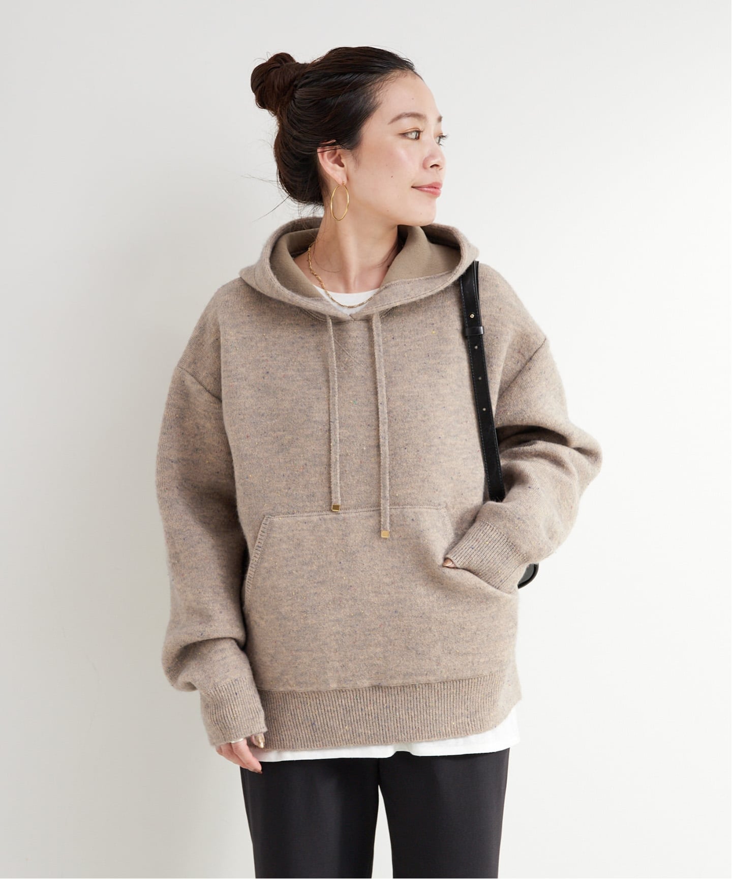 ほんのり厚みのあるフーディーに、ネップの表情が映える「フードプルオーバー」