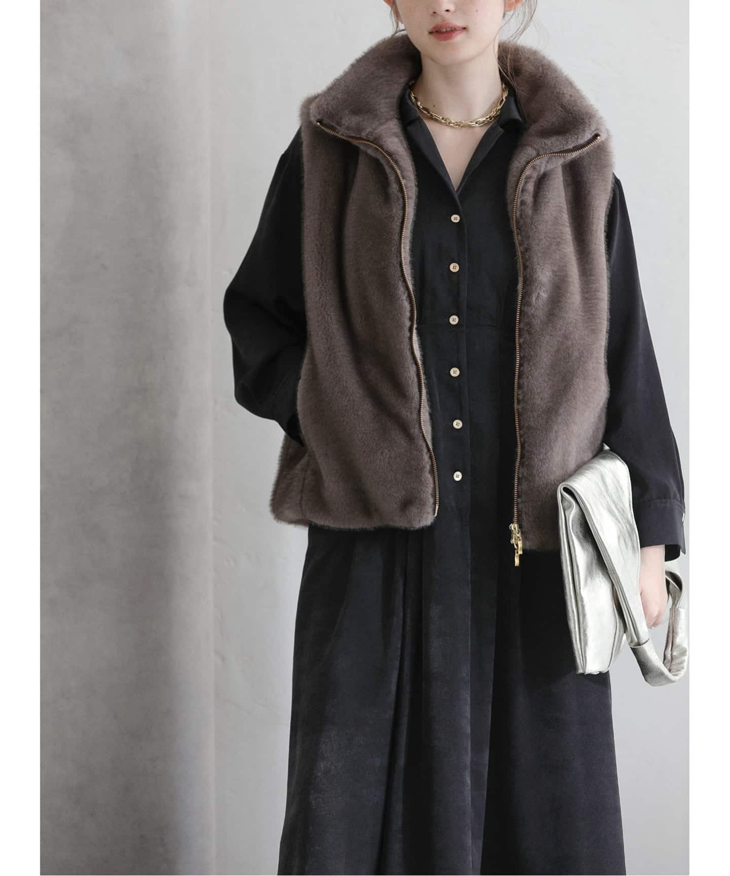 フードのように見える立体的な襟は顔周りを華やかに彩り、コーディネートをクラスアップ。