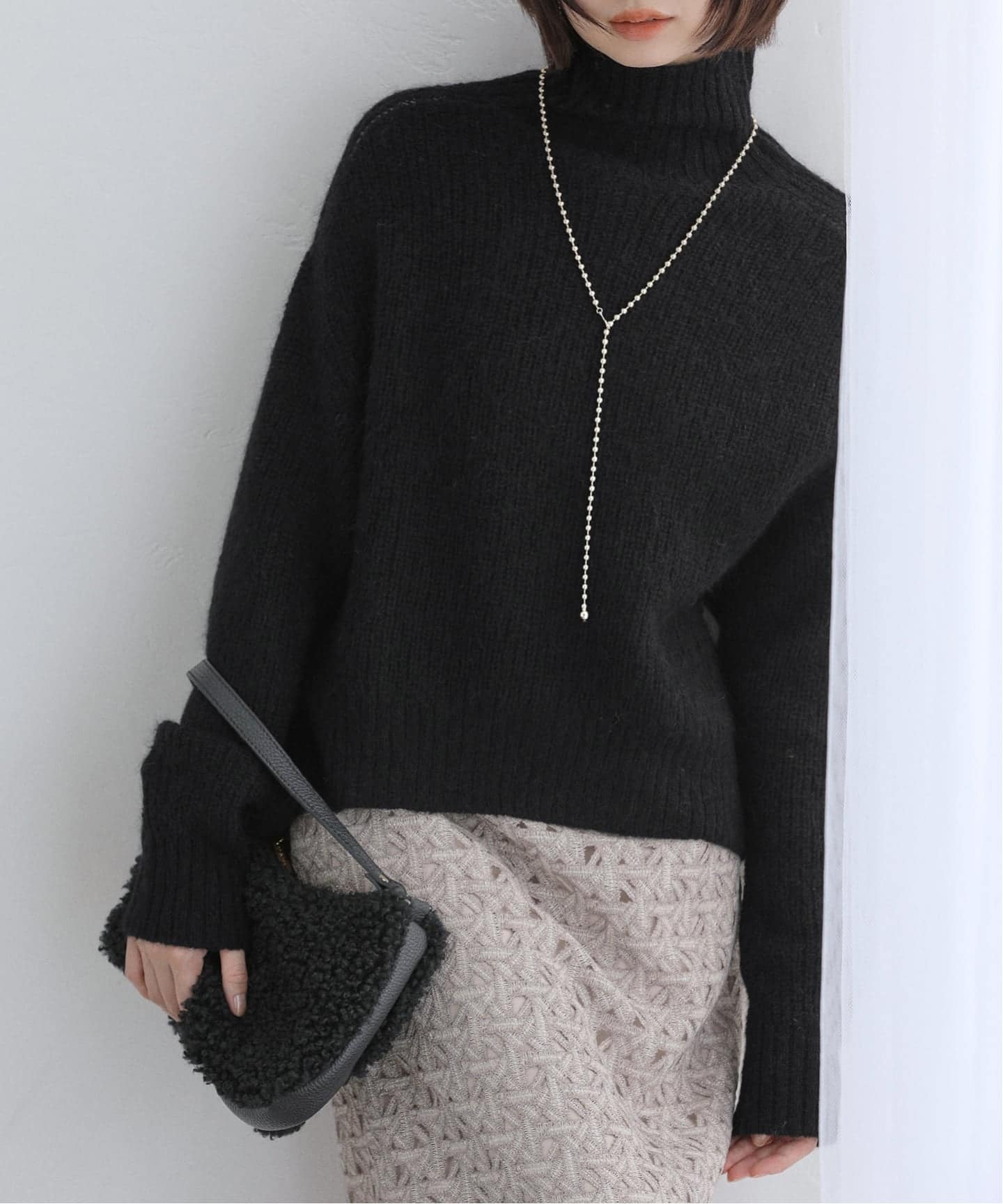 タートルネックはクシュっと立体的に仕上げ、ニュアンスのある雰囲気に。