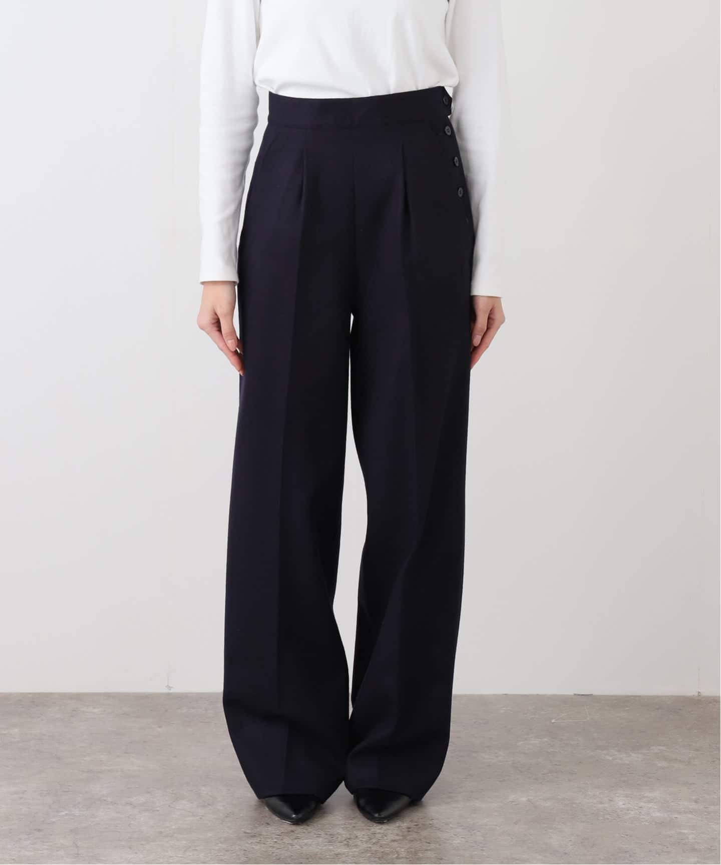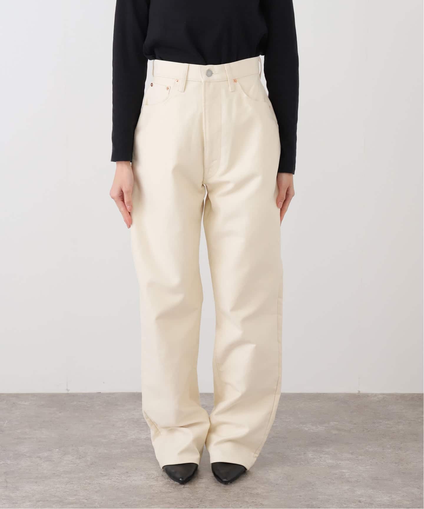 股上が深い太めストレートで、丸みのある女性の体型にフィットするようにとられたフロントのタックと背面のダーツ、レディースならではの脇開き、ベルトループの無いシンチバック。これでもかと美を構築するディティールが凝縮されています。