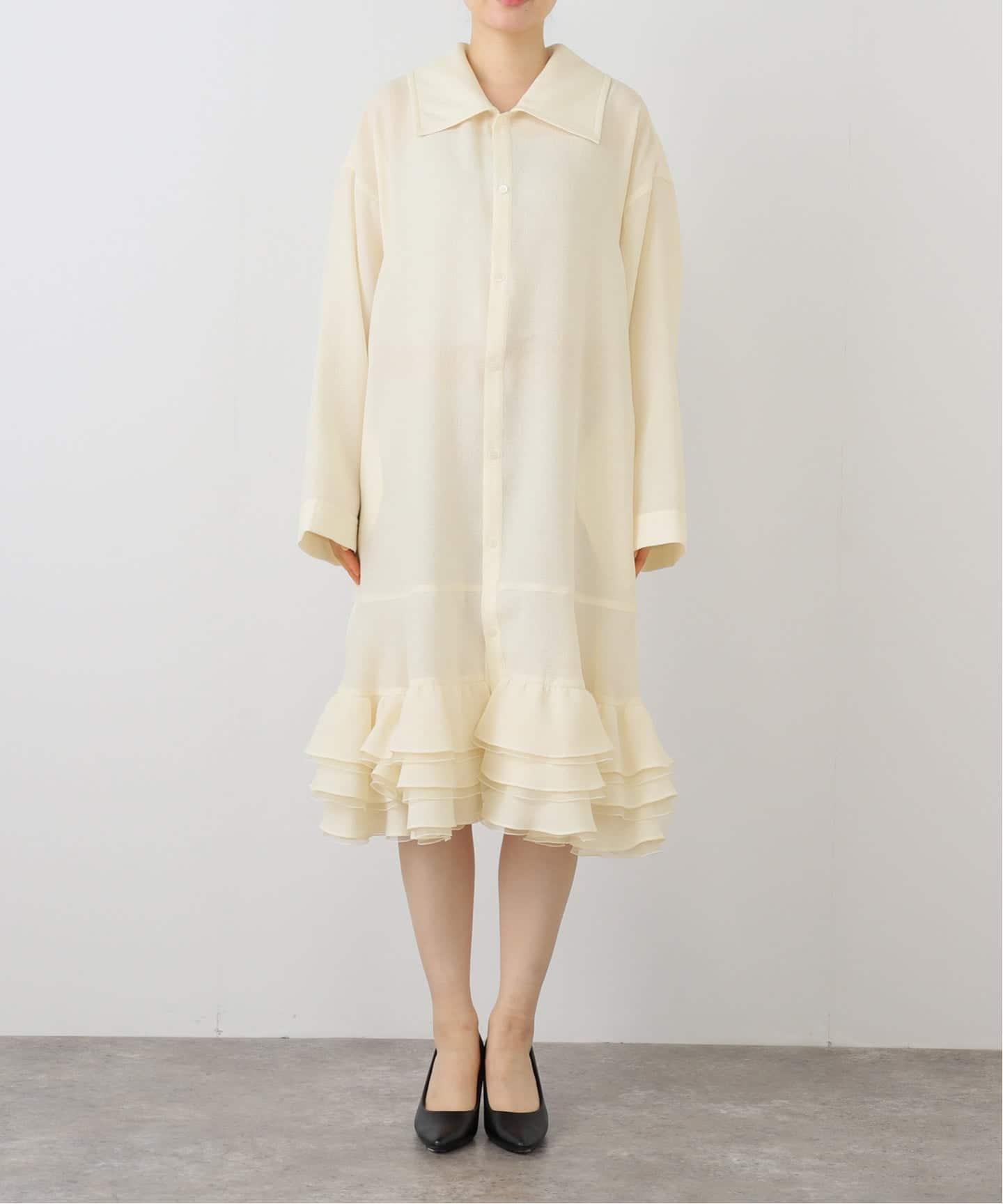 ヒップから裾までの直線的なシルエットがウエストの細さをより強調されて女性らしいラインが生まれます。