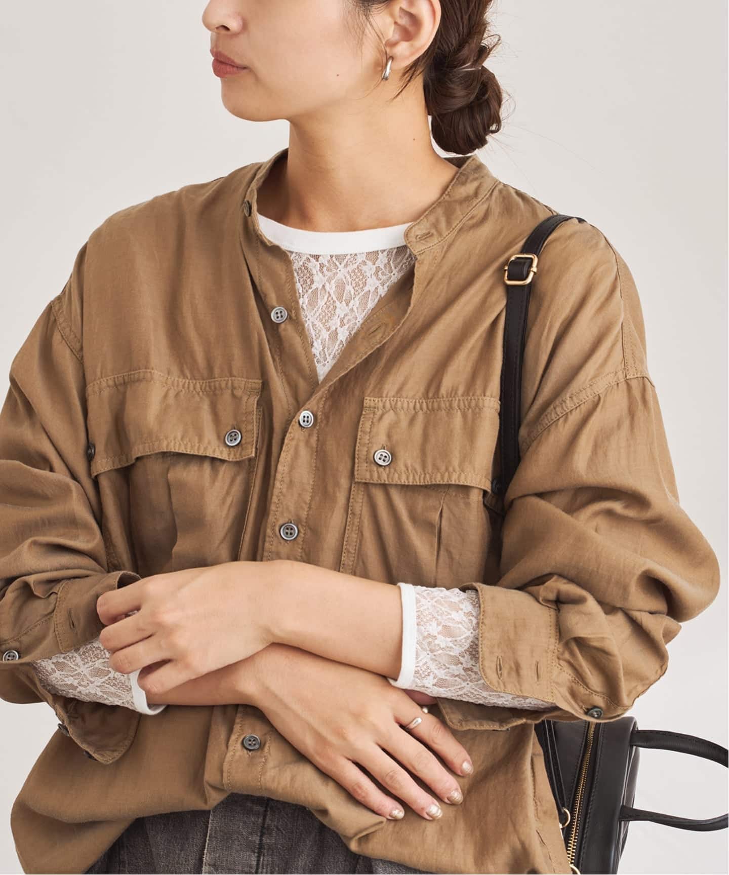 袖をゆるっとさせることで、シンプルながらもニュアンス感をプラスしています。