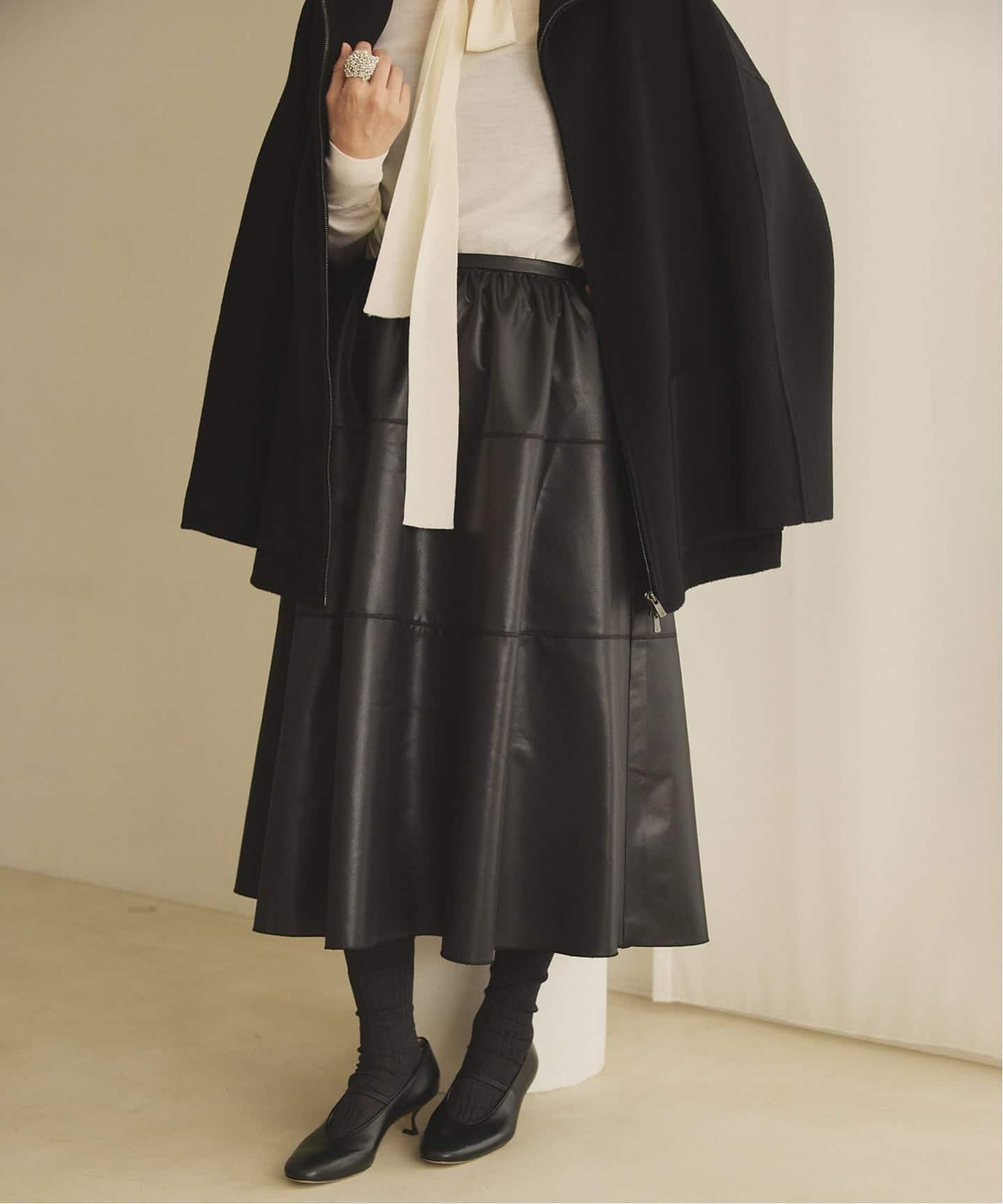 「レザーで仕上げる甘辛ミックスコーディネート。