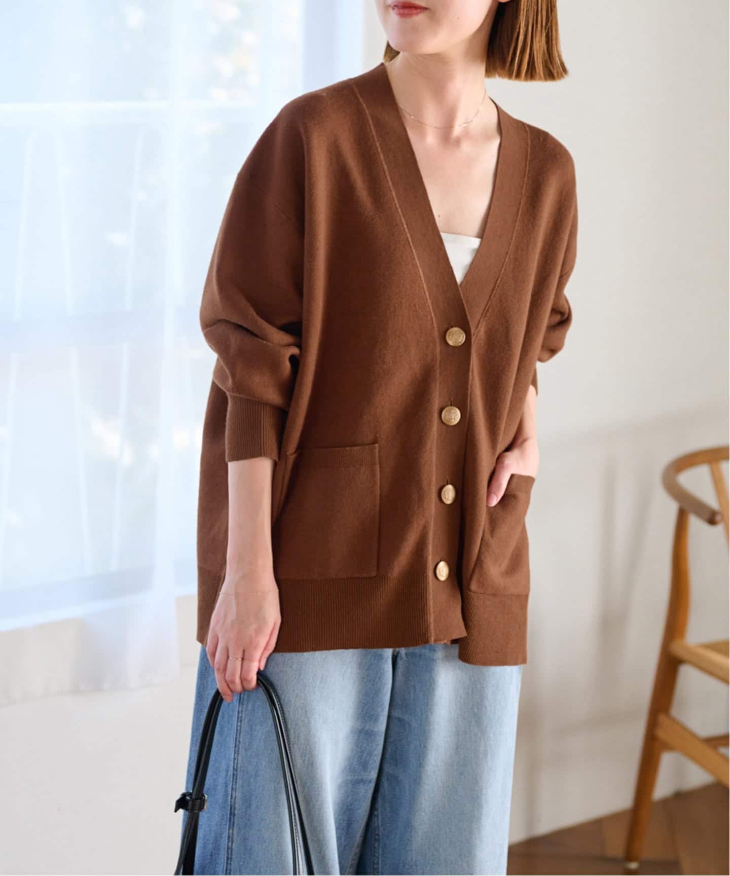 │ コットンカシミヤミックスダブルニットVネックカーディガン