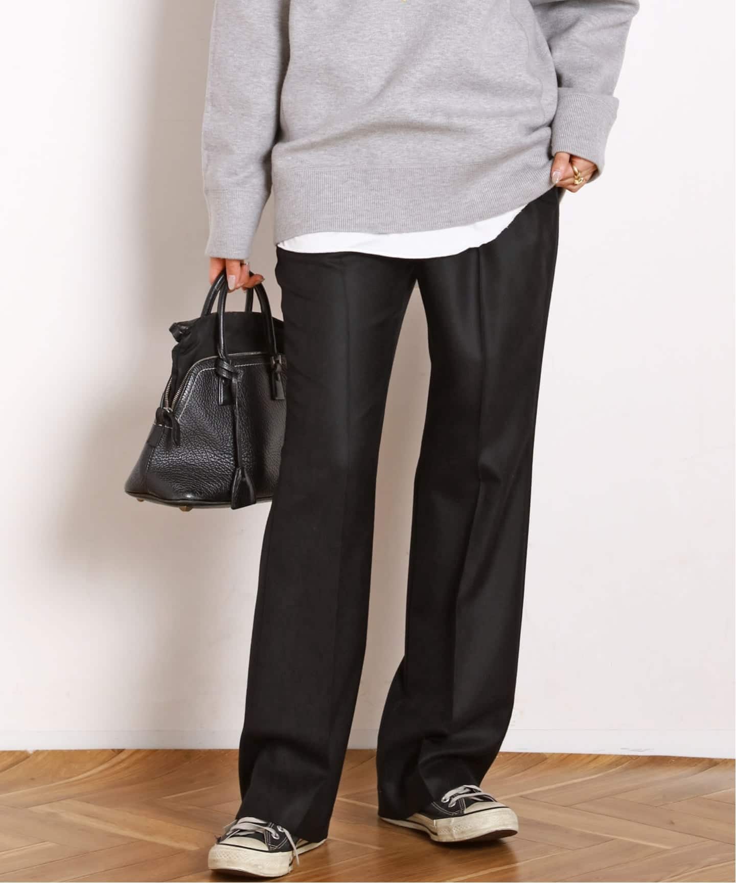 ボリュームのあるニットが着たくなるこれからのシーズンの着こなしに、バランスがいいサキソニーウールパンツ。