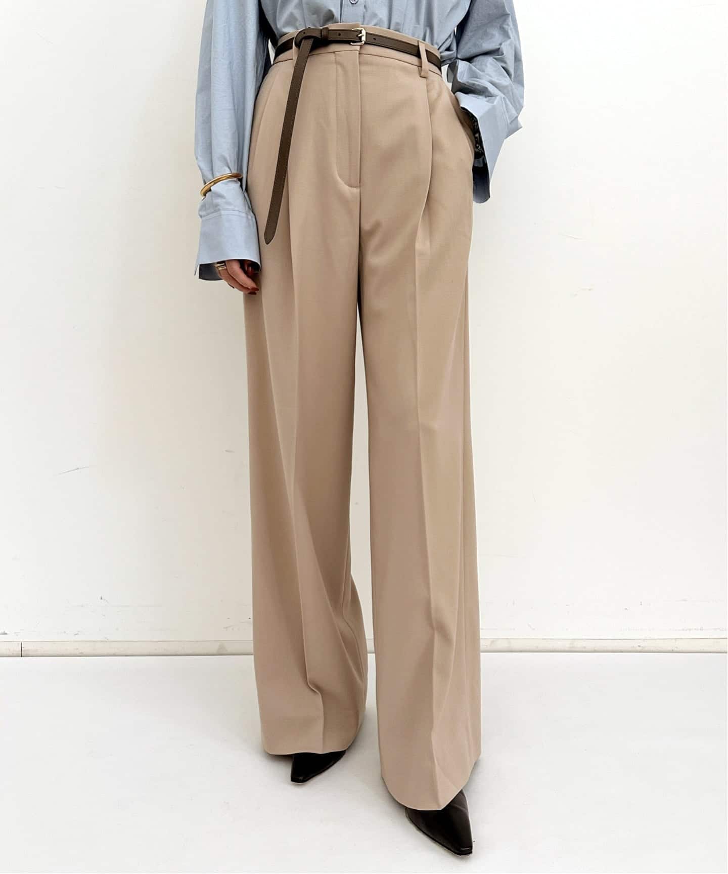 先に紹介したニットとの相性も抜群。スタイルアップが叶うハイウエストのタックパンツはシーズンレスで長く愛用できるのも魅力です。