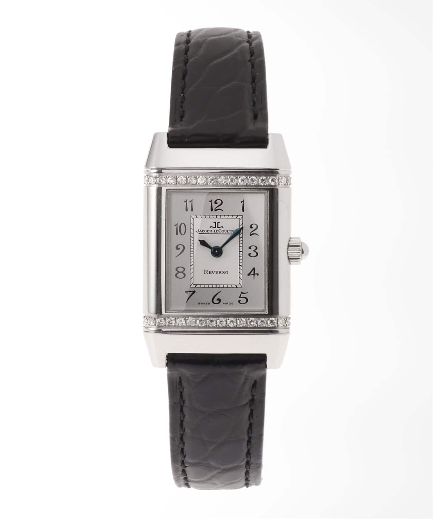 ゴールドにはだせない魅力をもつステンレスシルバーは、アーバンな雰囲気をコーデにプラス。ケース外周にはダイヤモンドが取り巻きます。