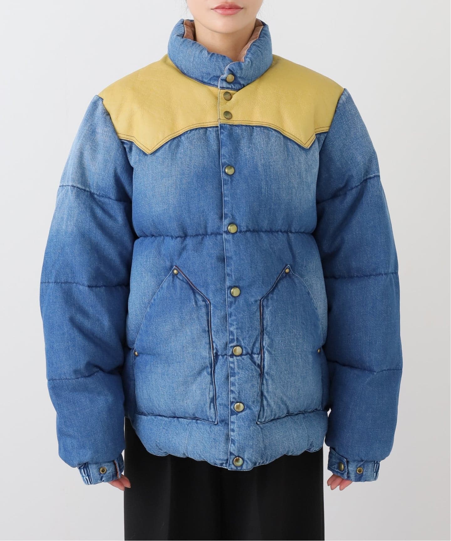 Rocky Mountain Featherbedの女性向けモデル「Annelle Vest」アニールベスト 一枚裁ちのレザーヨークと天然ムートン襟が特徴のブランドを代表するベストで す。 通常のモデルと異なる女性モデルならではのレザーヨークのカッティングライン と、スタイリッシュに着られる短めの着丈が大きな魅力。