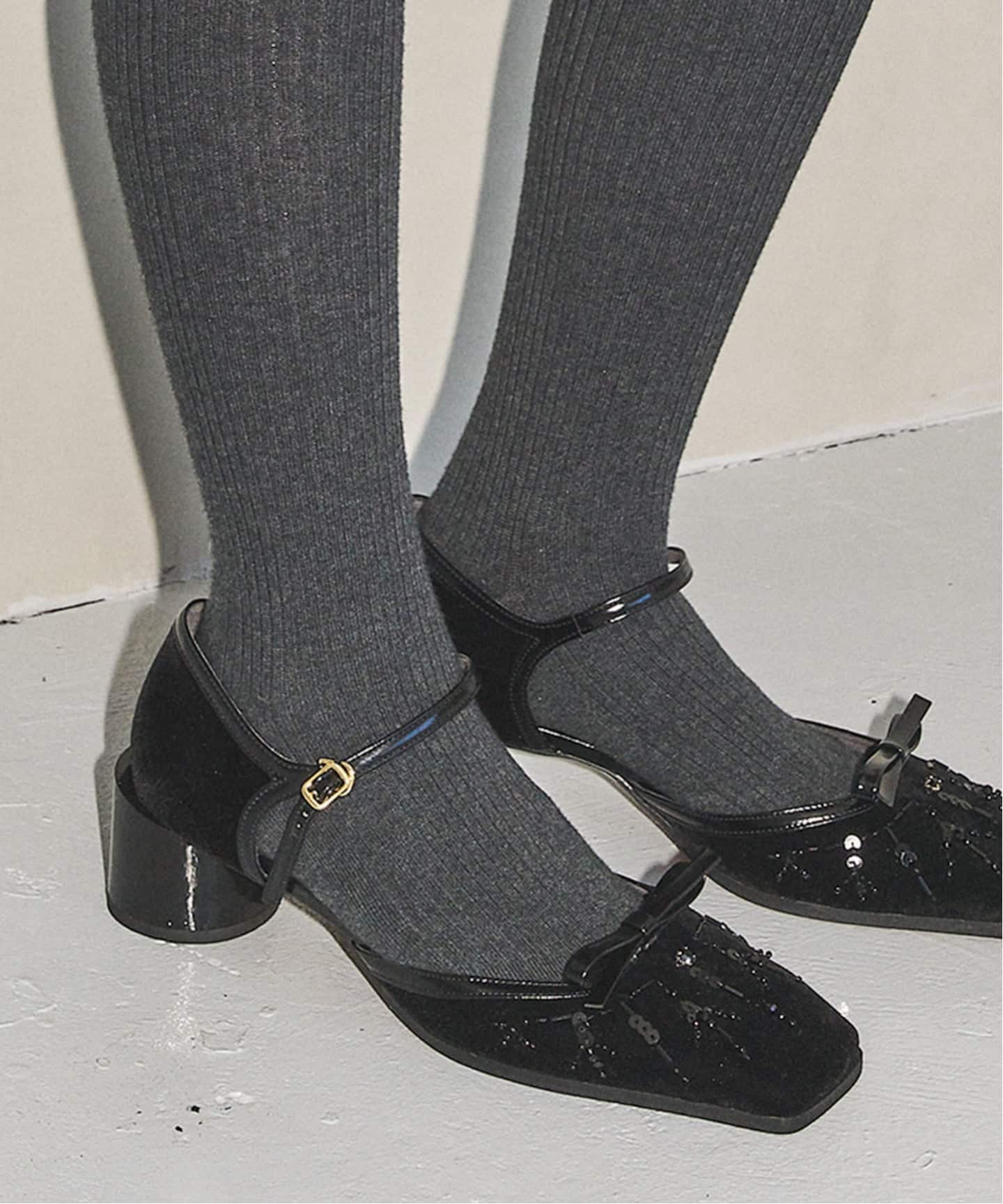 《追加》GRISE5.5cmレザースクエアストレッチパンプス