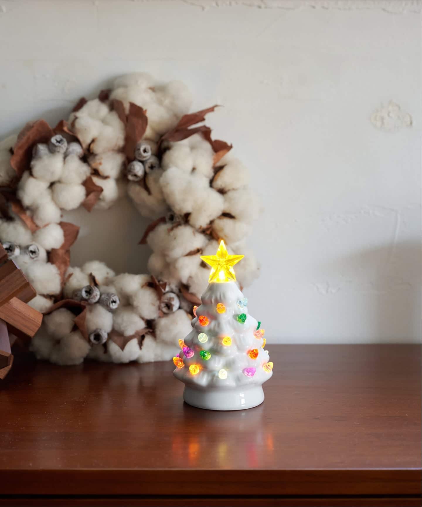 お部屋ではライト等を入れることで、光が灯火し見た目も楽しく、ホリデー気分を盛り上げます。