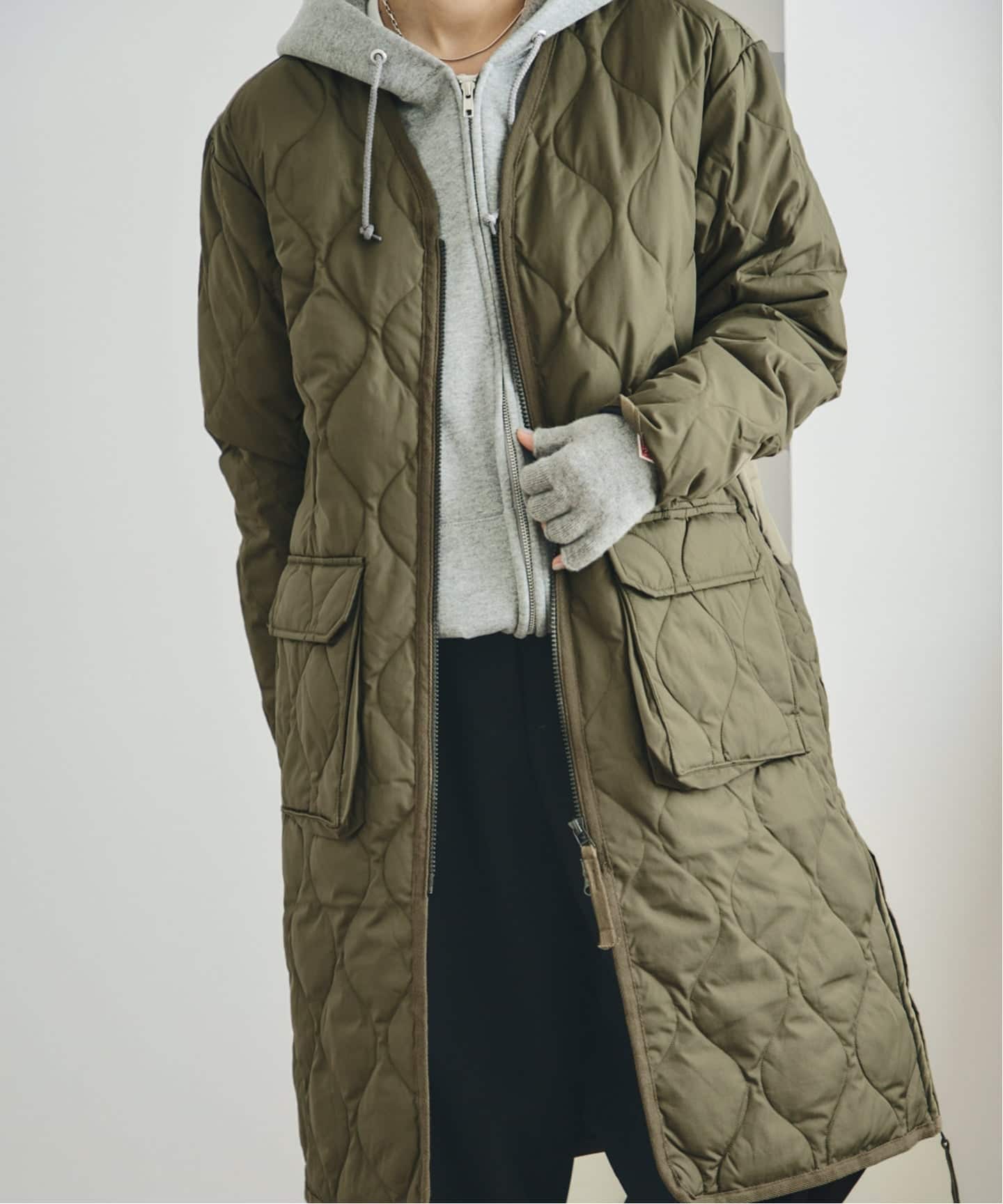 "ミリタリーラインのベストセラー、VネックWジップダウンコート"