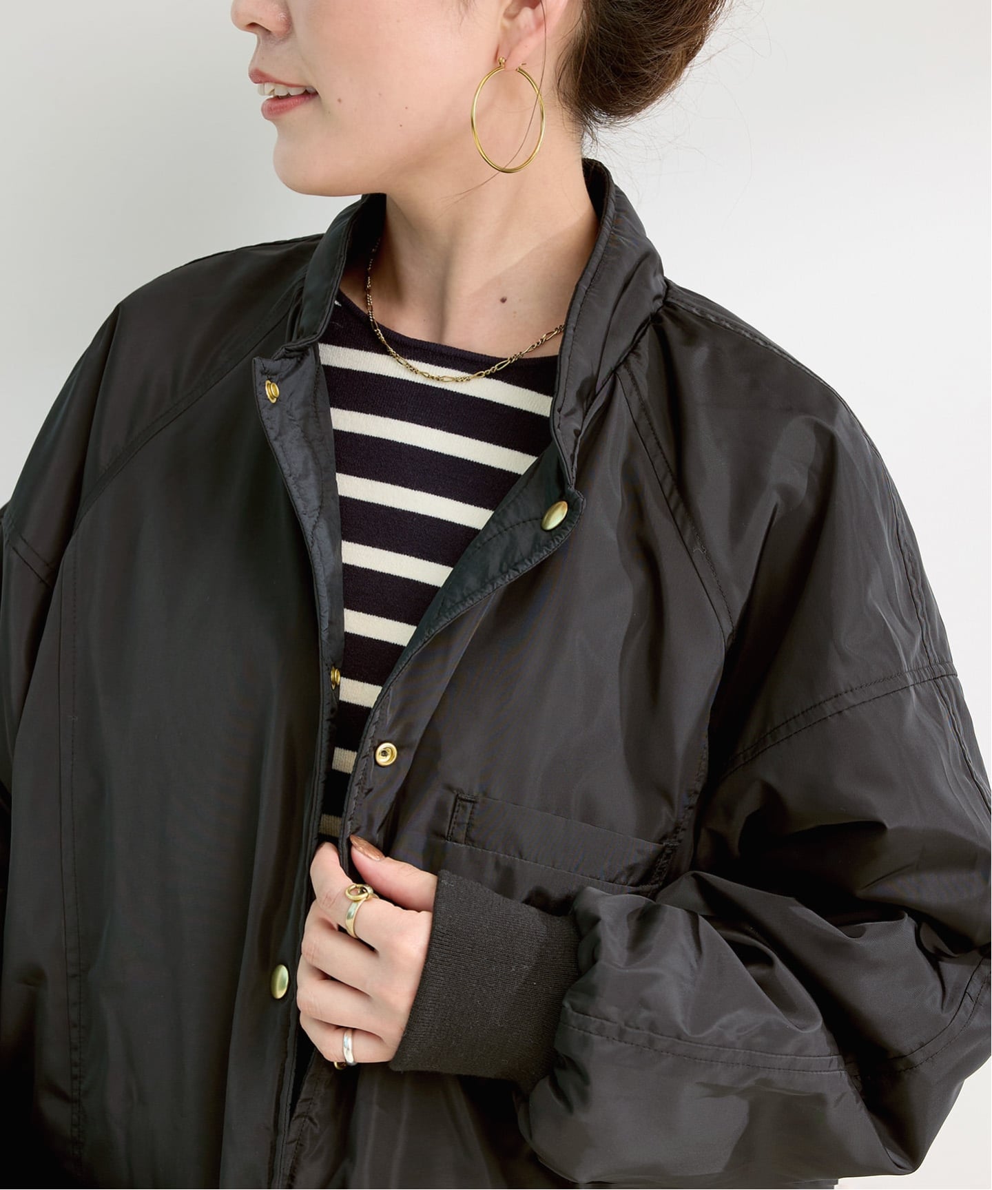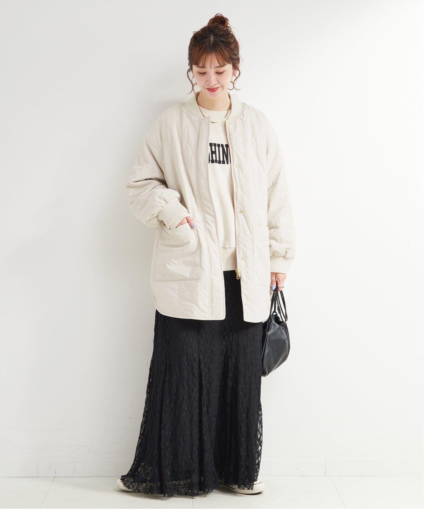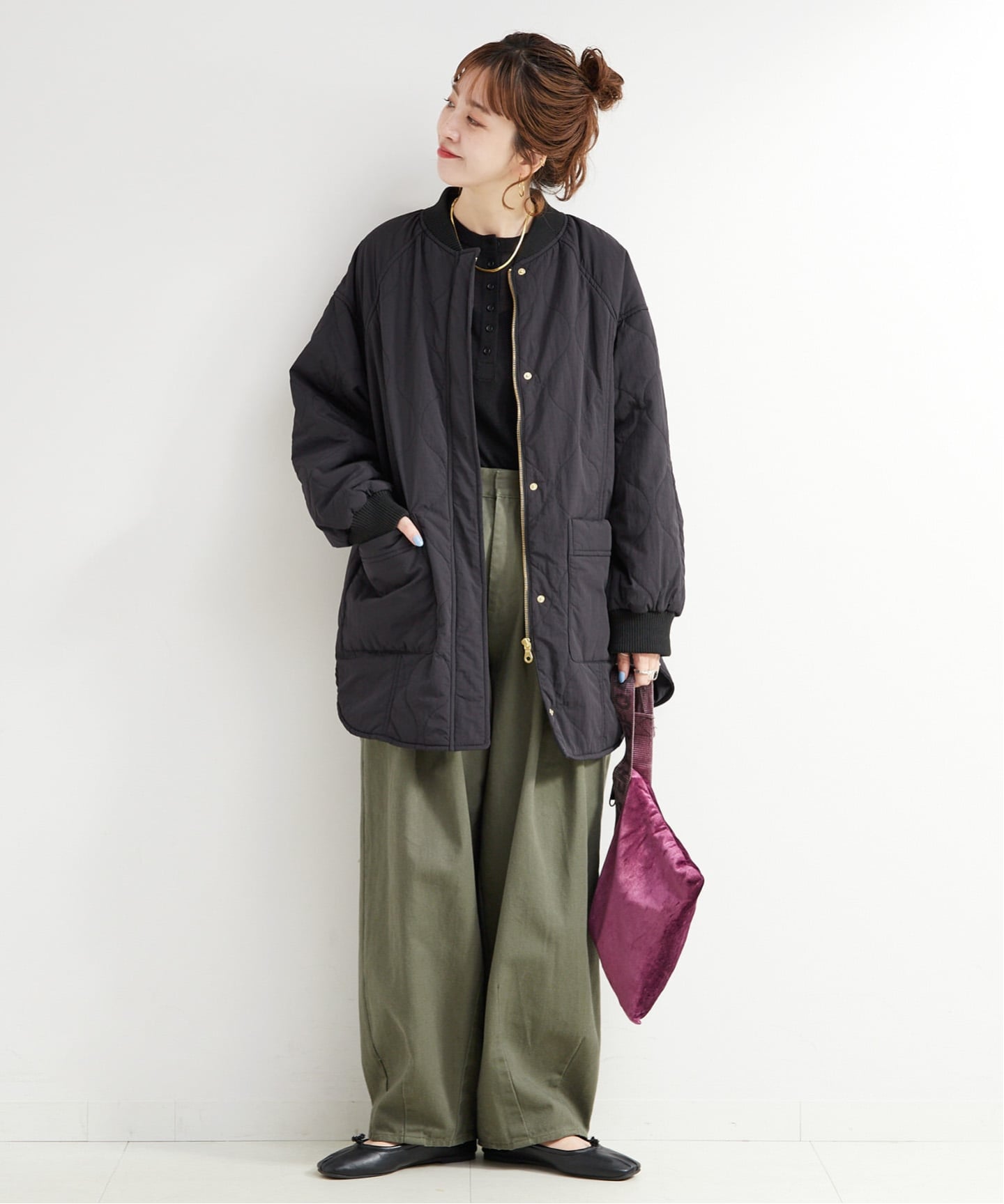 ボリュームがありながらも、すっきりとしたシルエットで着ぶくれしにくい設計です◎