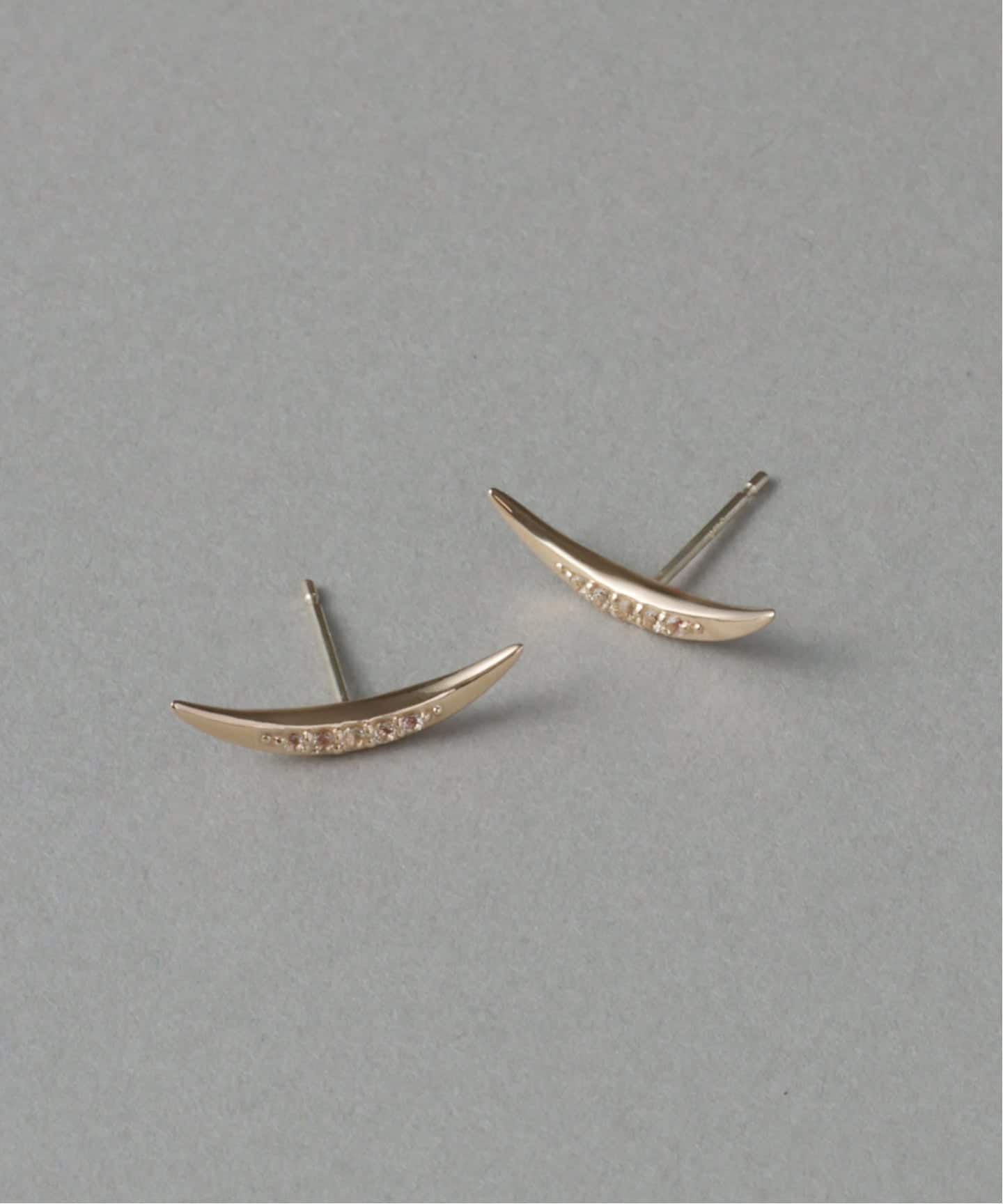 三日月型のラインに、繊細なホワイトトパーズがきらめくネックレスとピアス。
